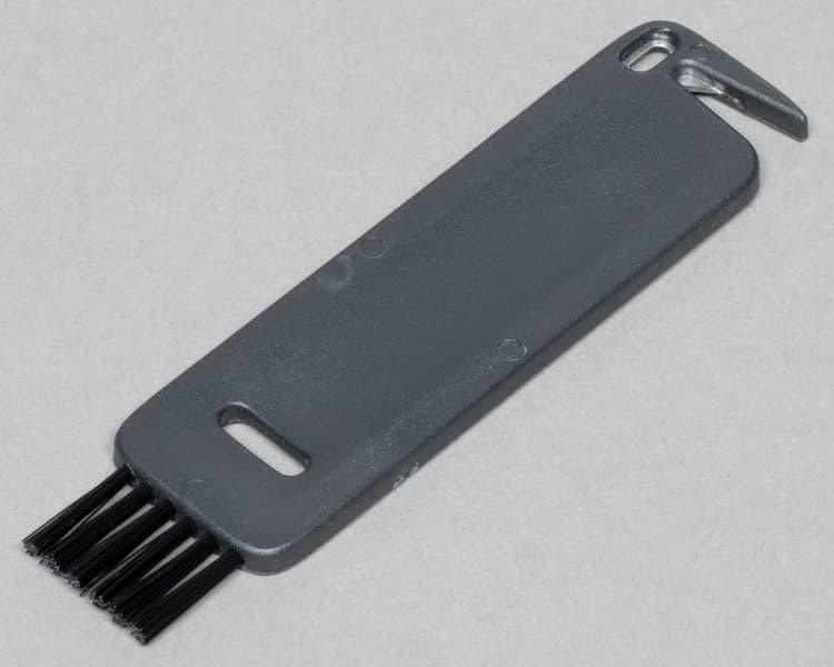 Если щетки робота требуют очистки, смело берите специальное приспособление, которое есть в комплекте у этой модели. Лезвие у него — для срезания ниток, шерсти и длинных волос, а щетка подойдет для снятия прилипшего мусора со щетины и выметания его из уголков пылесборника.