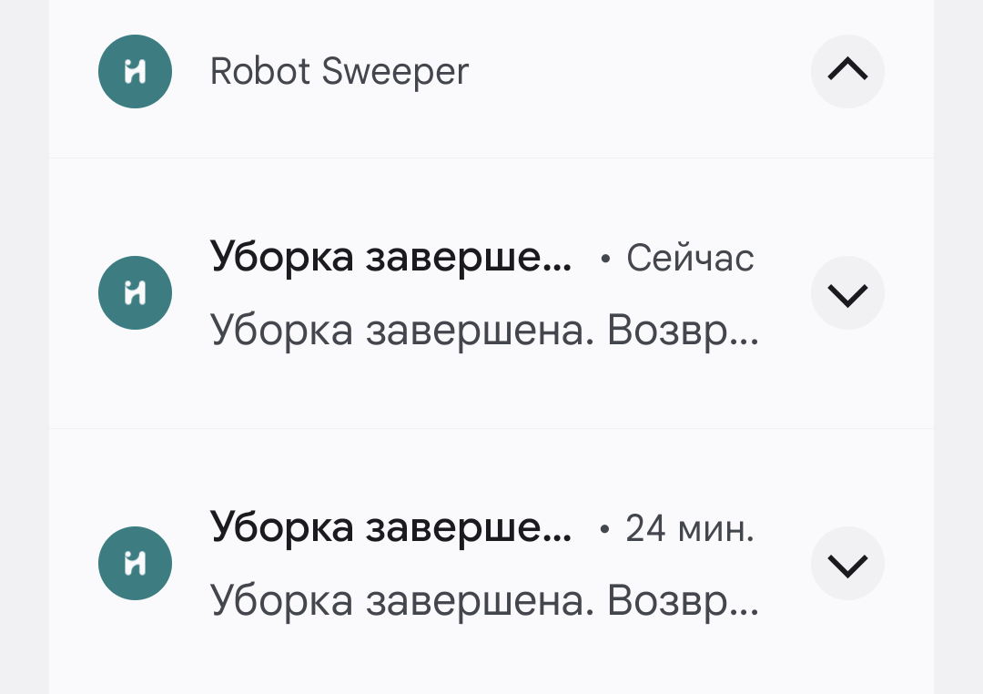 Об успешно завершенной уборке или неполадках в работе робот извещает пользователя голосом на русском, английском или китайском языке. Также на мобильный телефон приходит пуш-уведомление.