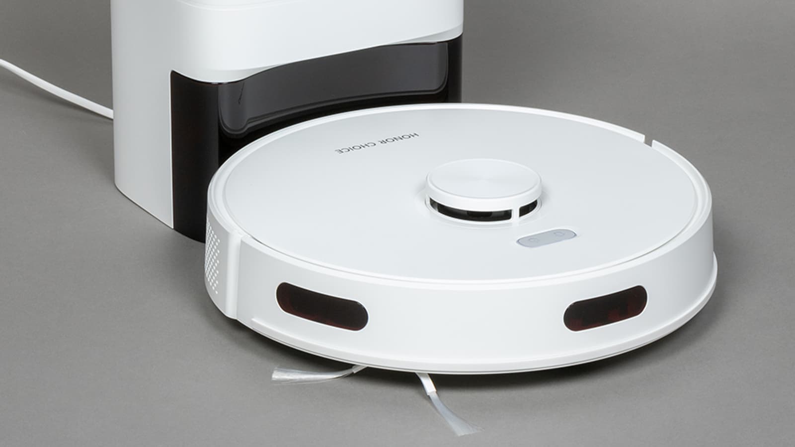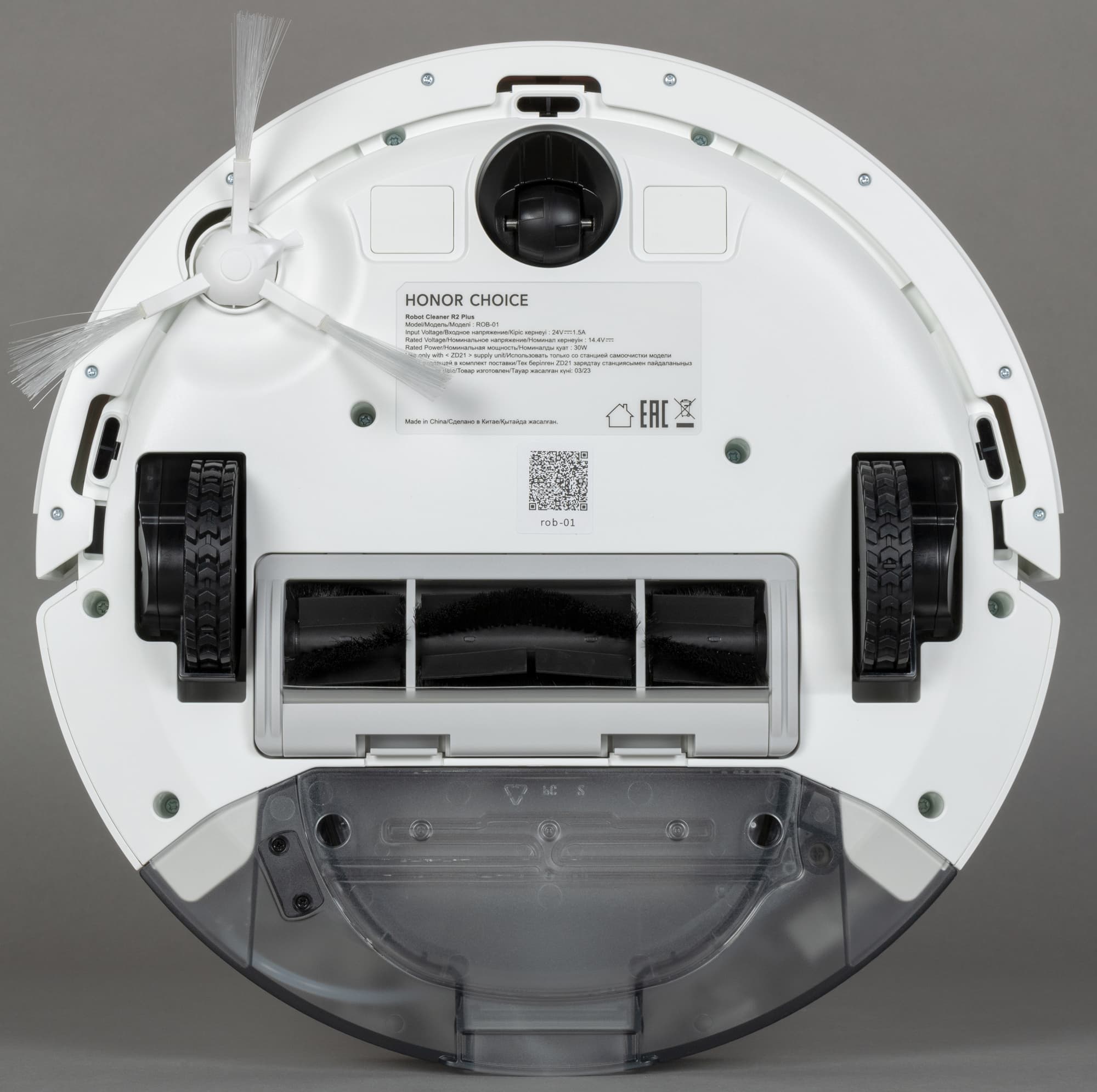 А сейчас в нашем распоряжении Honor Choice Robot Cleaner R2 Plus/ROB-01 с системой самоочистки и одной боковой щеткой. Мы выпустили этого строгого белого робота на оперативный простор и докладываем о его деятельности.