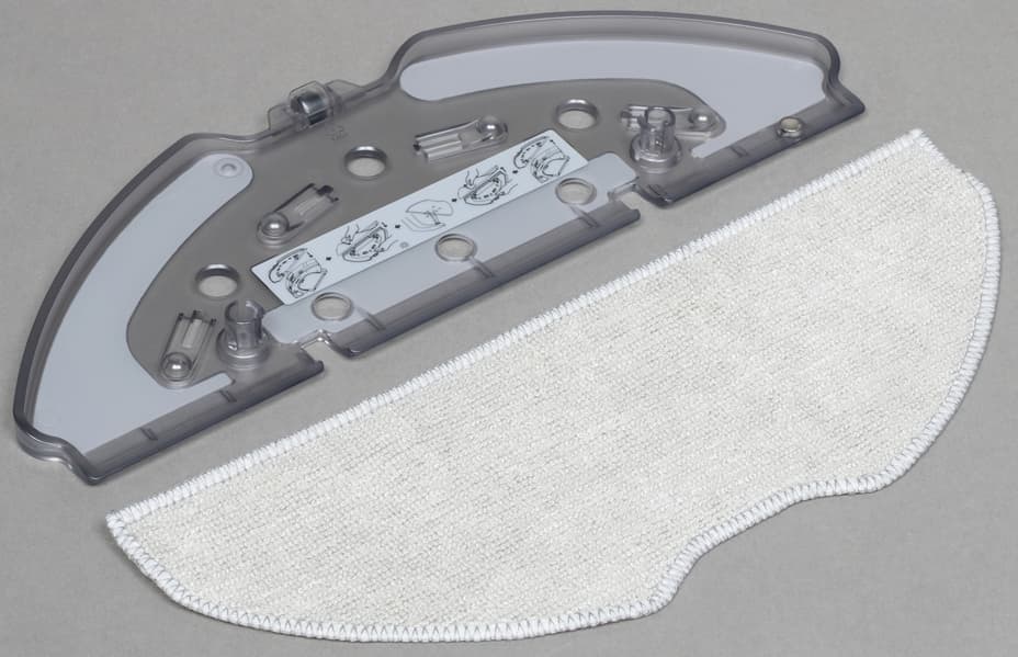 Единственный модуль, входящий в комплект, предназначен для комбинированной (сухой и влажной) уборки. Его отсек находится в задней части корпуса. На корме хорошо заметны два металлических контакта, обеспечивающие зарядку, и окошко для самоочистки, через которое базовая станция удаляет мусор из контейнера.