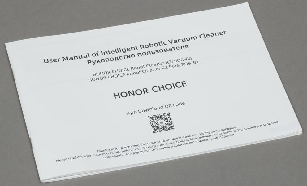 Комплектация Honor Choice Robot Cleaner R2 Plus позволяет сразу же приступить к использованию пылесоса, но никакого запаса расходных материалов ему не положено: нет даже сменных мешков для мусора.