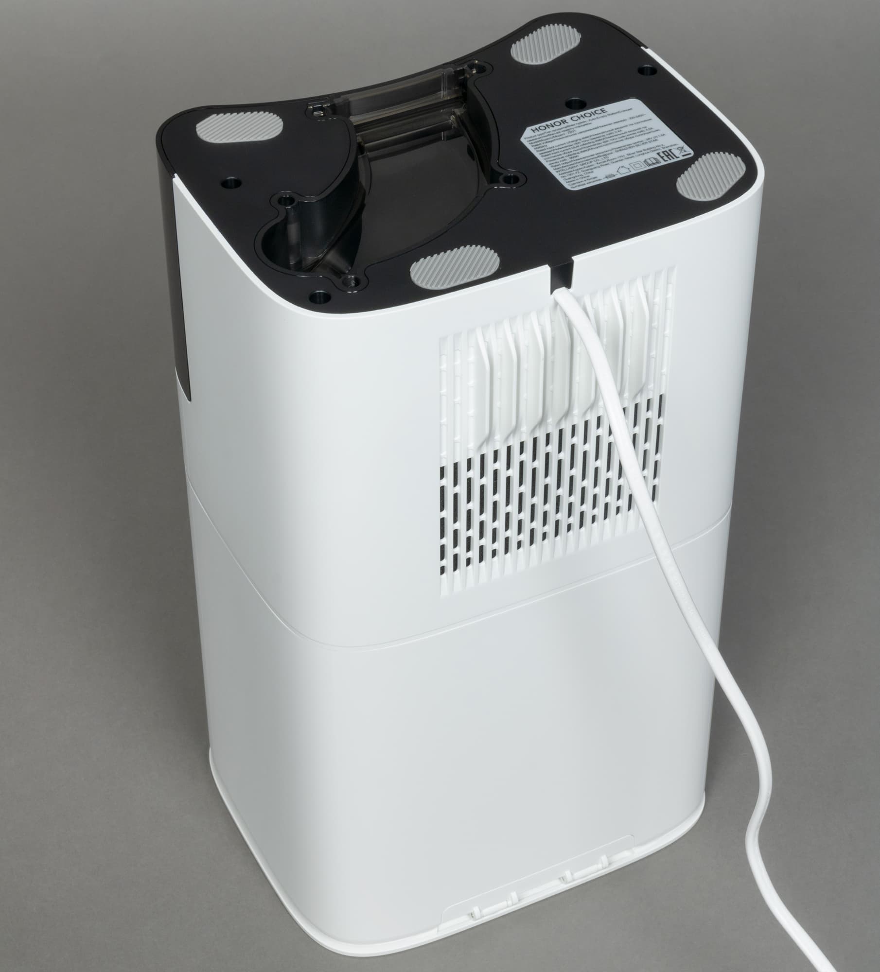 На дне базы — накладки из рубчатой резины, обеспечивающие устойчивость на напольных покрытиях любого типа. Выпускная решетка расположена в задней части корпуса.