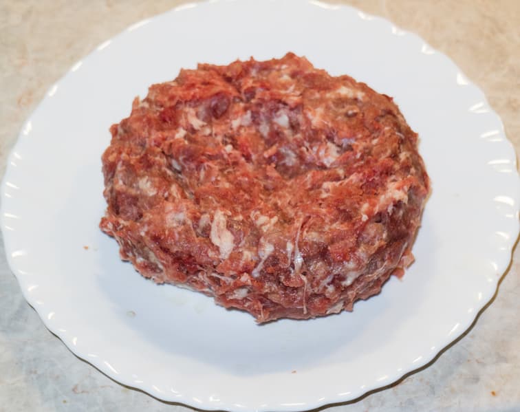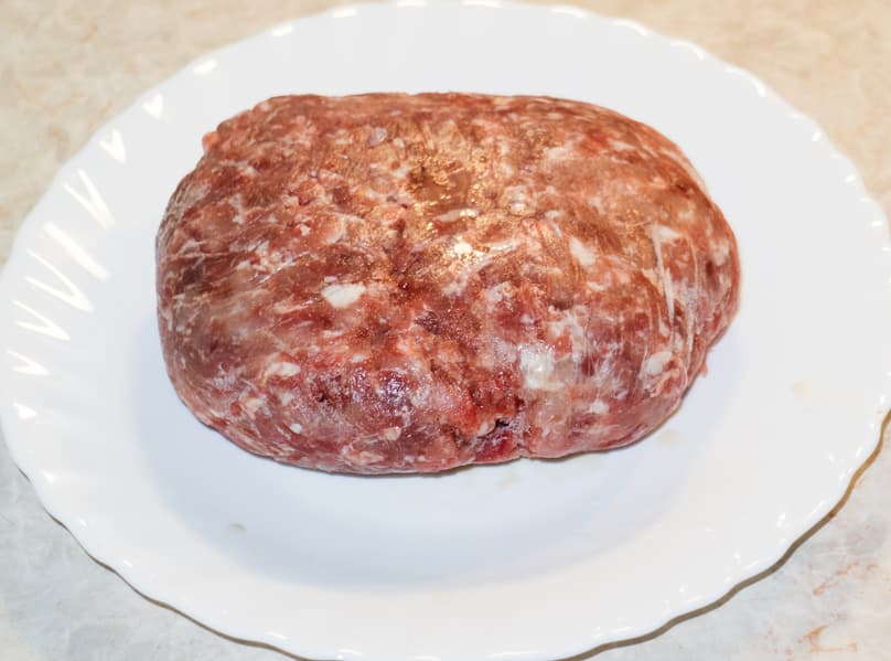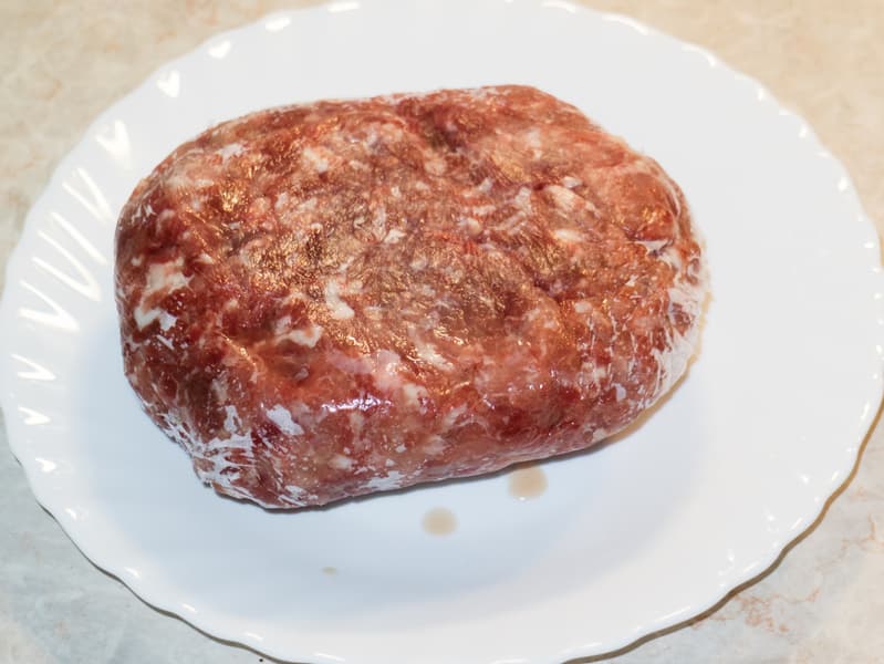 По завершении цикла разморозки комок был холодный, но не ледяной, белок не свернулся. Дали продукту отстояться в течение десяти минут, как это рекомендуется при размораживании в микроволновой печи. После этого фарш остался прохладным, но был податливым. Чуть холоднее была часть в форме бублика в самой середине куска.