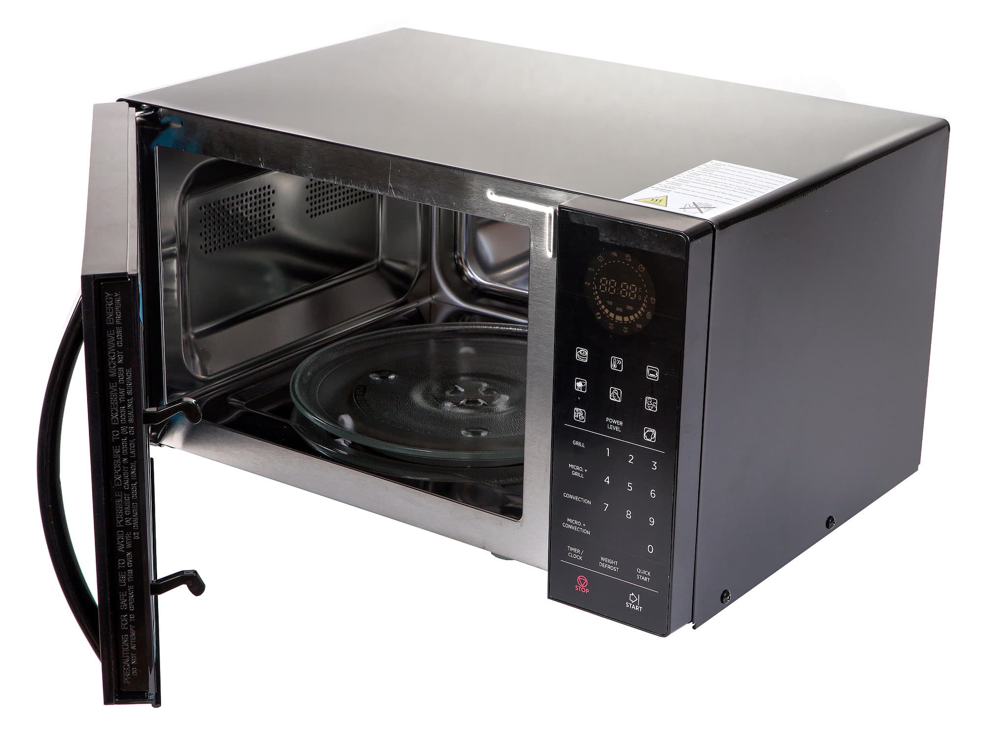 Единственный минус, по нашему мнению, связан с дизайном печи: распашная дверца непрозрачна. Каким образом предполагается визуально оценивать готовность блюд, приготовляемых в режиме гриля или конвекции, остается только догадываться. Также стоит обратить внимание на один нюанс, который мы не можем отнести к минусам — это скорее особенность прибора: из-за гула вентилятора уровень шума выше по сравнению с обычными микроволновыми печами.