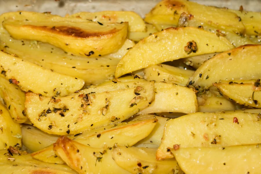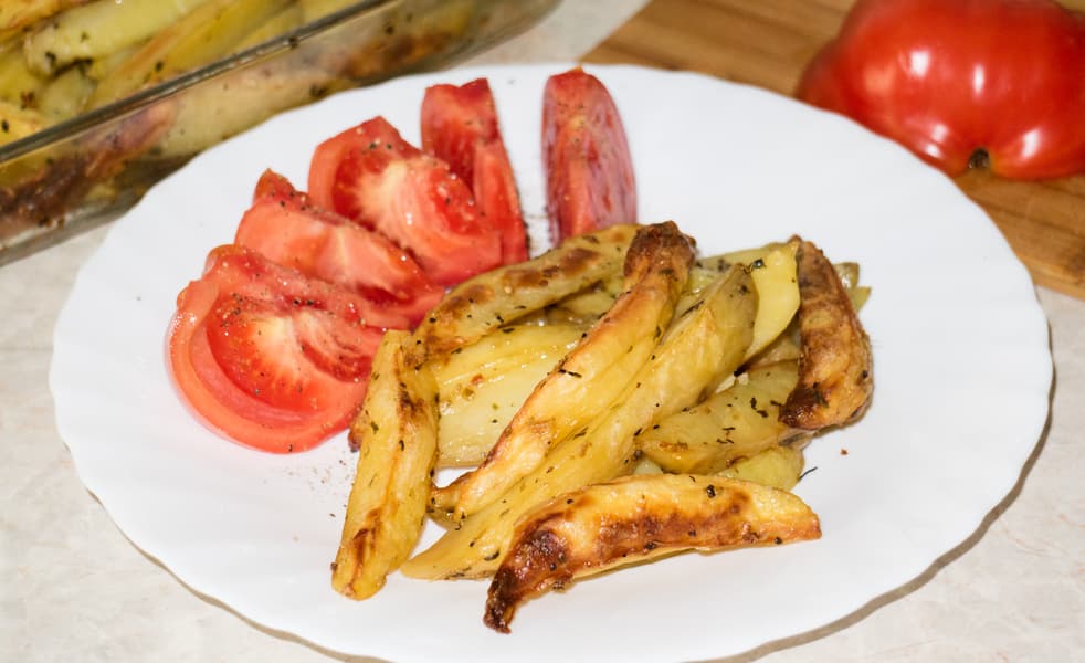 Для жарки использовали режим «Микроволны+конвекция» с температурой 200 °C. Решили, что для приготовления в комби-режиме хватит 20 минут. Однако мы ошиблись. Спустя 20 минут картофель начал поджариваться сверху, но большинство ломтиков были жесткими. Хорошенько перемешали и вернули в печь, установив те же параметры еще на 20 минут. Через 10 минут открыли печь и еще раз перемешали.