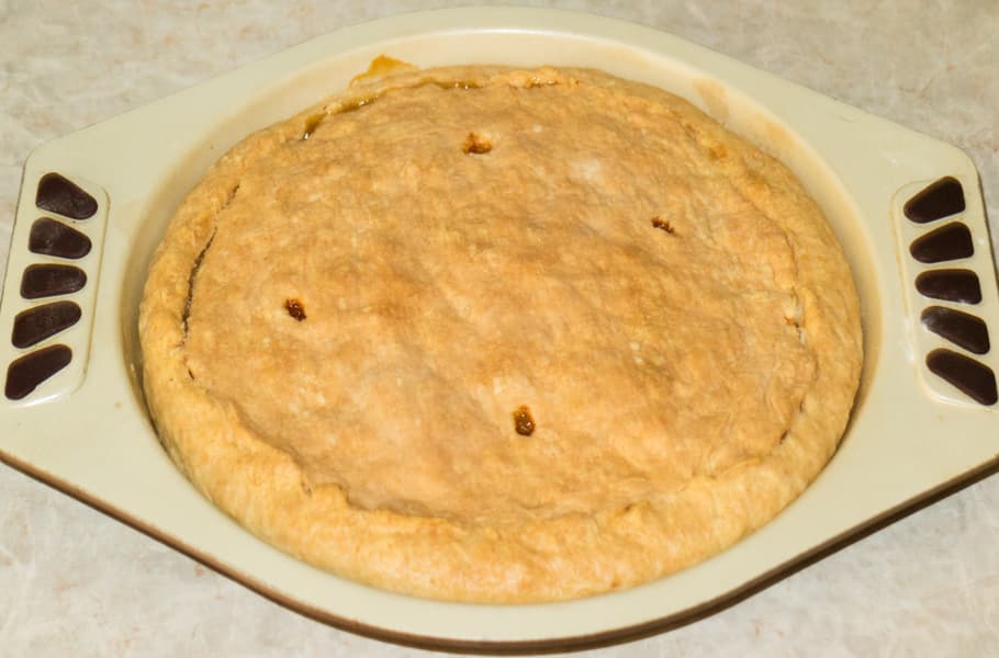 Когда раздался звуковой сигнал, вытащили пирог из микроволновки, которая в данном случае выполняла функцию духовки с конвекцией. Внешне блюдо казалось готовым, деревянная палочка выходила совершенно сухой. Когда пирог остыл, мы разрезали его и обнаружили один недостаток. В то время как снаружи тесто запеклось, нижняя часть пирога была приготовлена процентов на 70. Так что следовало либо подольше печь, либо оставить пирог на подставке. Думаем, что обдув горячим воздухом снизу помог бы более равномерному пропеканию.