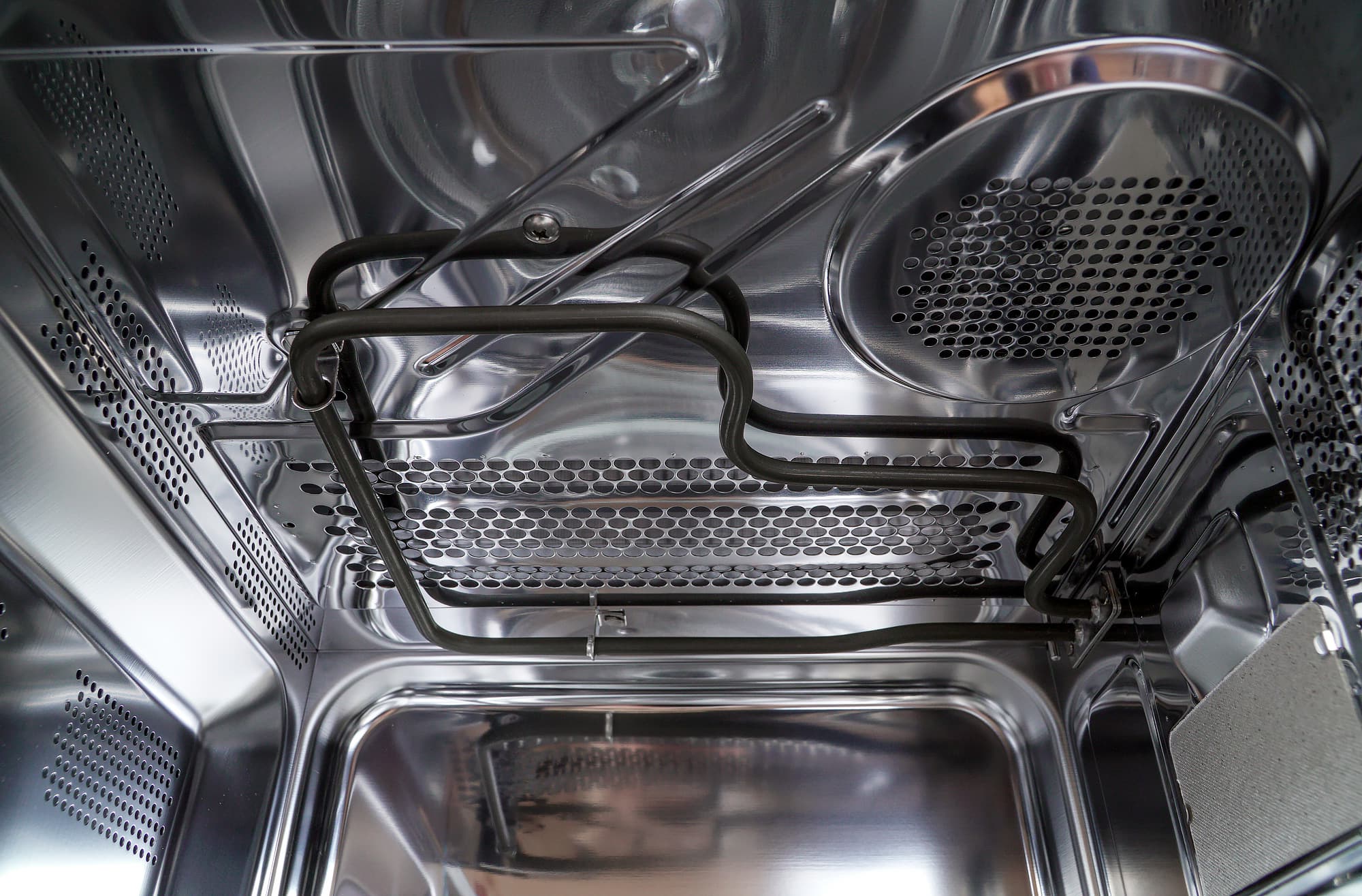 Приятной неожиданностью стало то, что стенки и потолок рабочей камеры оказались почти чистыми. На поверхности были замечены лишь отдельные капли. Мы протерли стенки, потолок и дверцу сухим бумажным полотенцем — этого оказалось достаточно для очистки печи после приготовления блюда с использованием гриля.