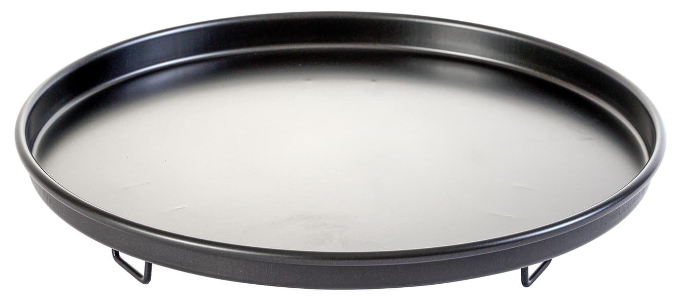 В комплект входит металлическая форма для выпечки круглой формы диаметром 28 см и высотой бортиков 1,5 см. Рабочая сторона формы обработана тефлоновым покрытием. Форма «стоит» на трех ножках, которые приподнимают ее над поверхностью на 3 см.