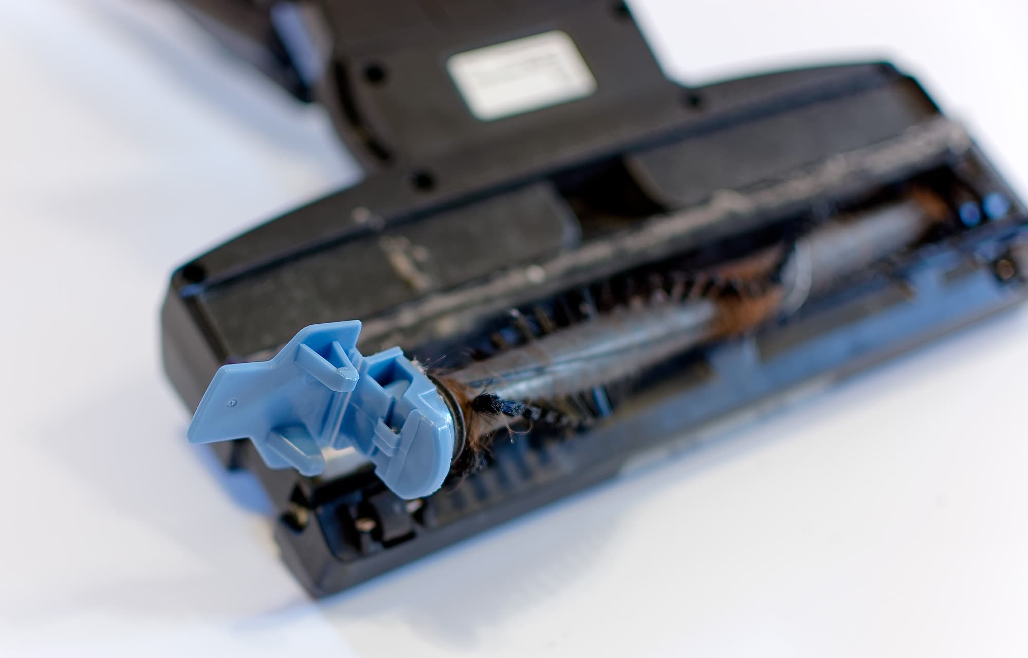 Уход за турбощеткой состоит в извлечении из нее собственно щетки — для этого есть крепление, выделяющееся своим голубым цветом — его нужно потянуть на себя.