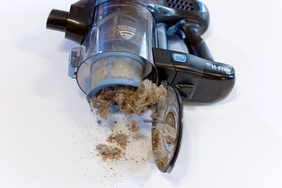 В зависимости от типа мусора, не всегда удастся вытряхнуть его сразу — если много волокон или волос, придется плотный клубок чем-нибудь подцепить.