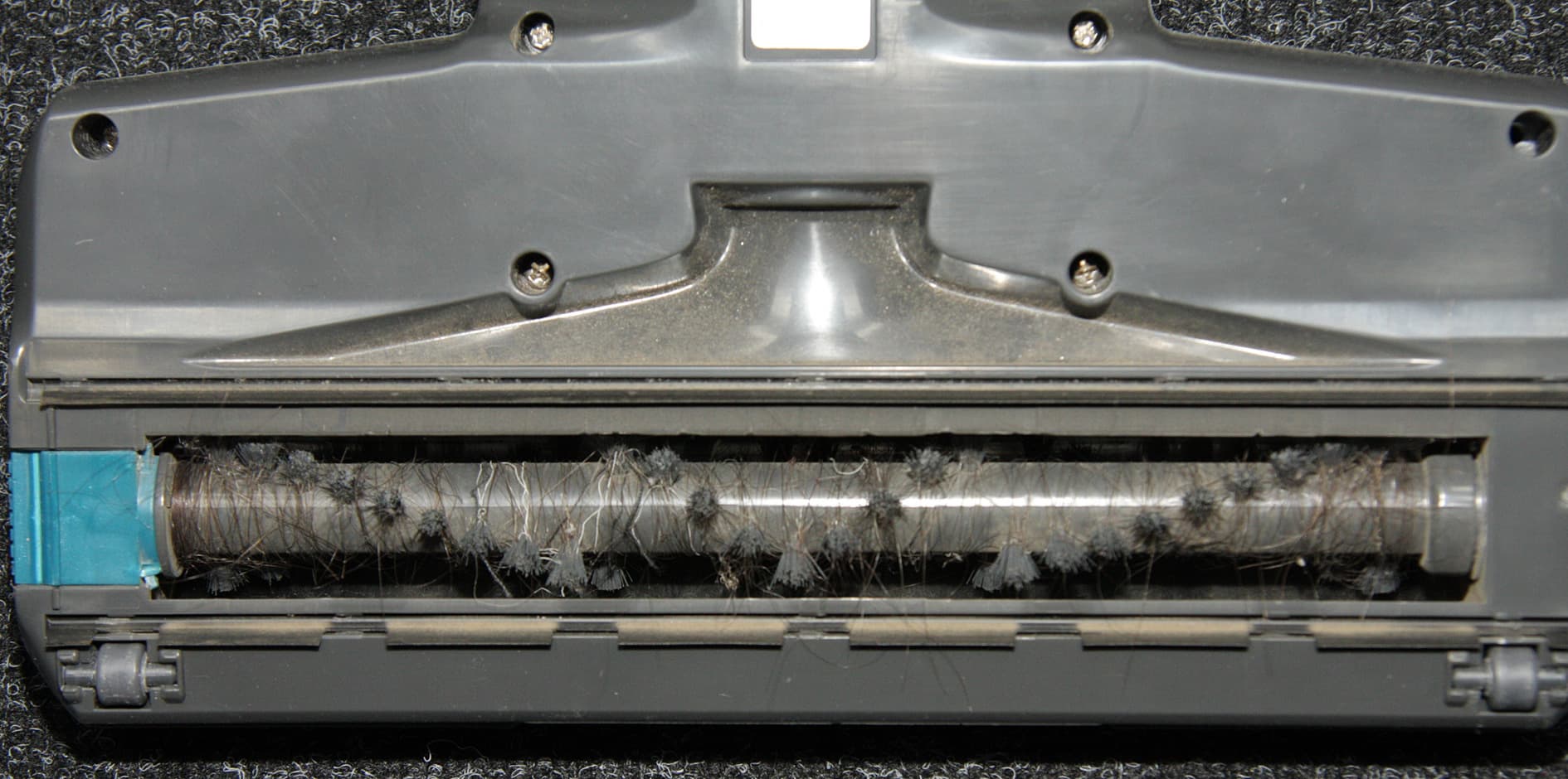 Эта насадка имеет относительно невысокий профиль (ее высота 84 мм). Однако даже в самом нижнем положении патрубка подсоединенная труба отходит чуть вверх относительно нижней плоскости насадки. Поэтому ее не получается далеко подсунуть под протяженные предметы обстановки с небольшим просветом, одновременно обеспечивая хороший прижим к полу. Герметичность подвижного сочленения обеспечивает гибкая гофрированная труба из пластика с каркасом из стальной пружины. Вращающаяся от электромотора щетка оснащена двумя волнообразными рядами из пучков тонких, но жестких щетинок. На валу щетки есть две продольные канавки, которые облегчают удаление всего намотавшегося на него. При работе прозрачный колпак позволяет определить, вращается ли щетка, а в перерывах видно, сколько и чего на щетку намоталось и не пора ли ее почистить.