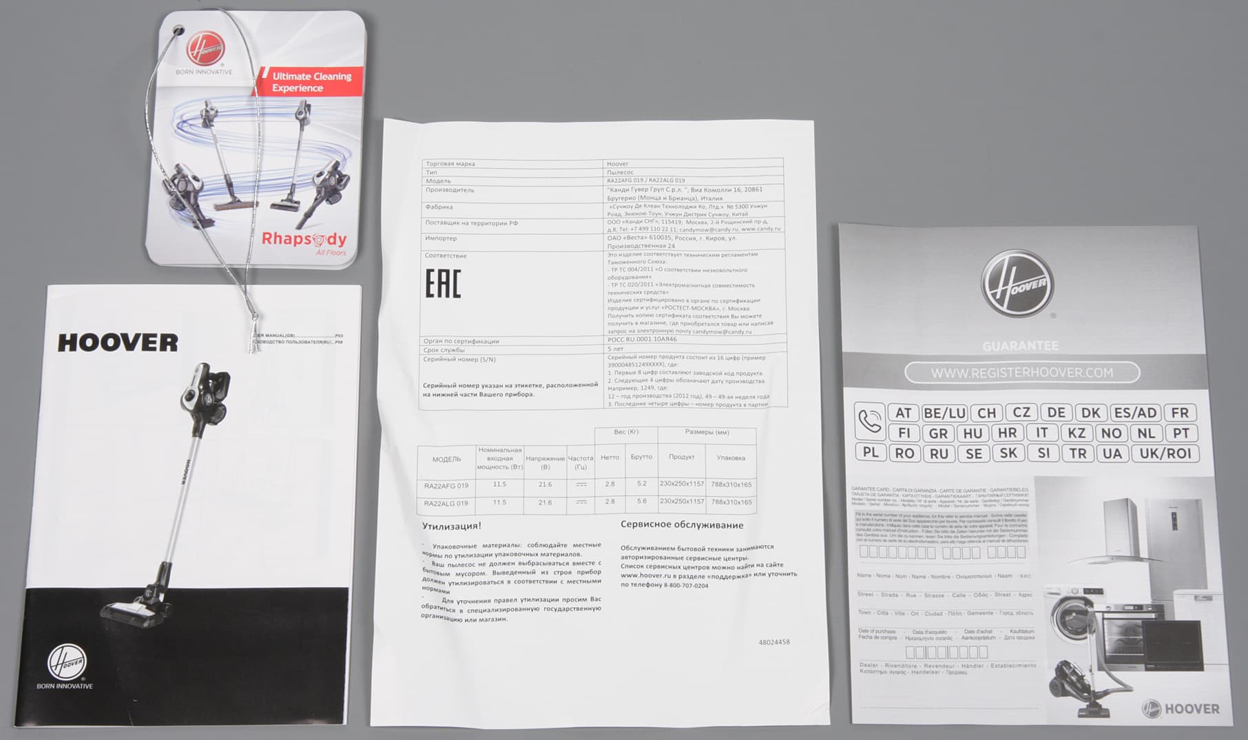 Руководство пользователя на двух языках: на английском и на русском. Руководство, видимо, можно загрузить с русского сайта Hoover, но для этого там предлагают пройти процедуру регистрации.