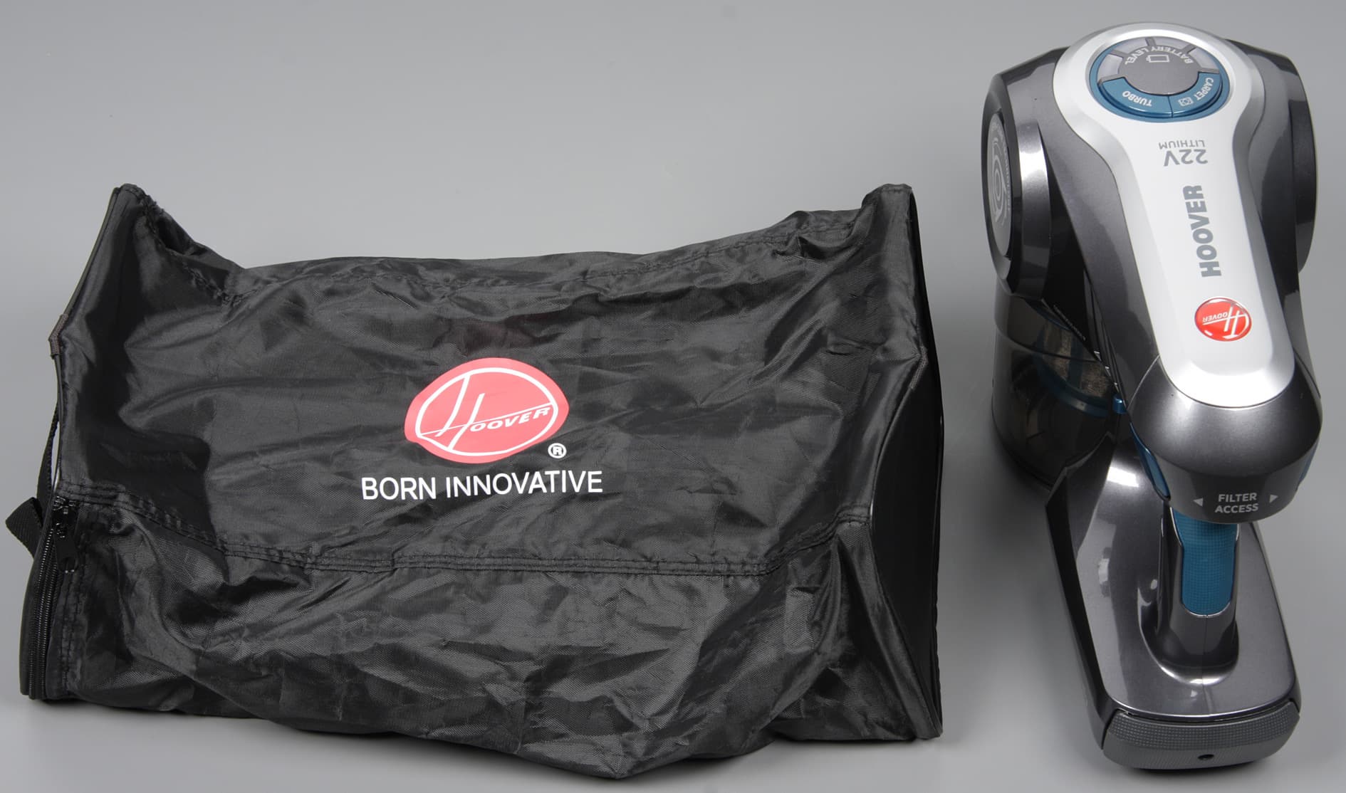 В комплект входит небольшой чехол-сумка с клапаном на молнии и ручкой из ленты. Собственно пылесос в чехол не помещается, но насадки, кроме трубы и электрощетки, в чехле хранить можно.