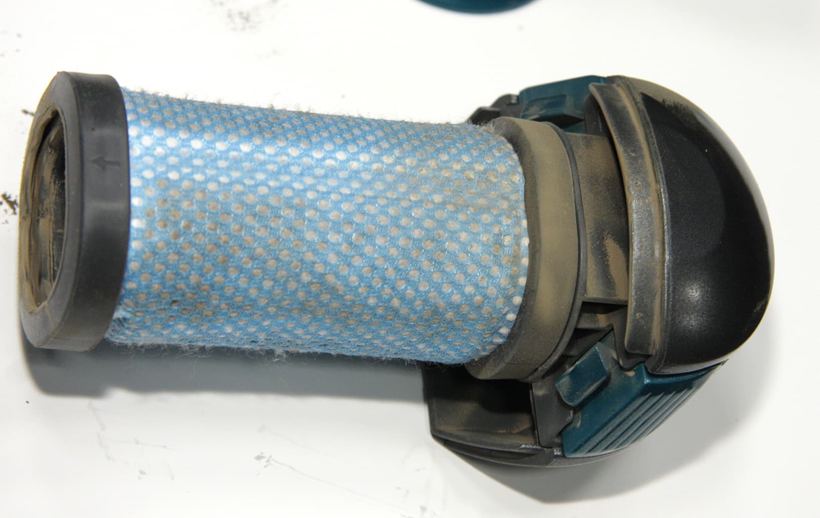Вращение сетки явно способствовало тому, что мусор сваливался вниз, а не налипал на сетку, как это обычно бывает у пылесосов с традиционным циклонным фильтром. Постмоторный фильтр задержал много пыли и мелких волокон. Видно, что часть мелкой пыли все же прошла через фильтр (воздух идет изнутри цилиндра фильтра наружу).