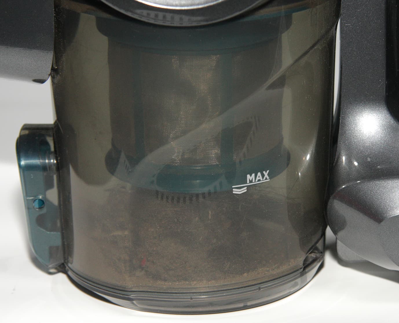 Прозрачный корпус пылесборника при взгляде снаружи позволяет оценить степень его заполнения: