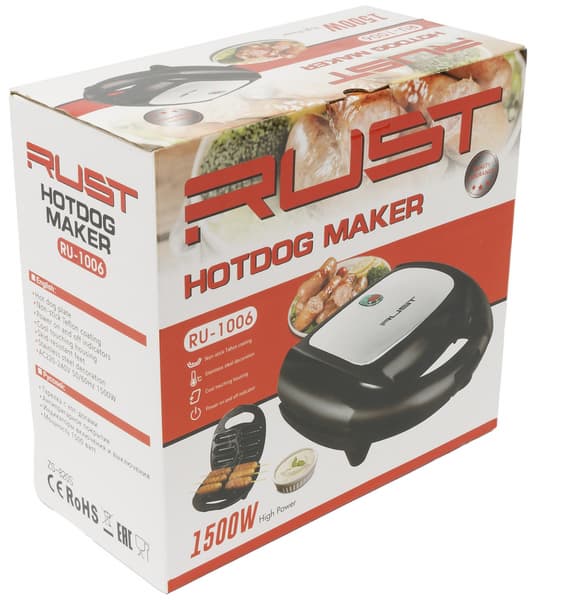 Аппарат для приготовления хот-догов Rust RU-1006 произвел на нас в целом хорошее впечатление. Это добротно изготовленный кухонный прибор, которым легко и просто пользоваться, который удобно хранить, так как он не занимает много места. Наличие 6 ячеек в панели позволяет одновременно готовить еду на семью или небольшую компанию. При наличии сосисок или другой готовой начинки прибор позволяет довольно быстро организовать сытный перекус. Специальные выемки по бокам ячеек позволяют готовить еду на палочках. Для приготовления блюд могут быть использованы различные виды теста и начинок (нежидких), что позволяет экспериментировать.