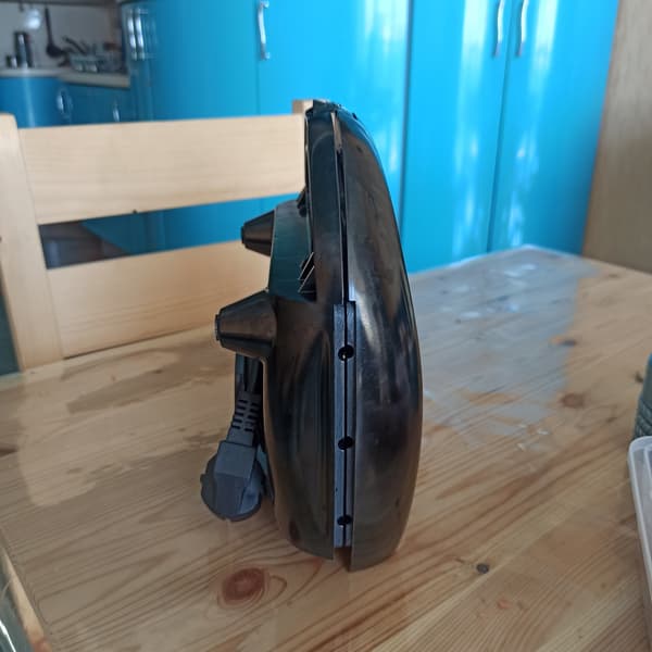 Снизу в передней части корпуса расположены две ножки высотой 2,5 см, которые снабжены резиновыми накладками, третья ножка с более широким плоским основанием обеспечивает прибору устойчивое горизонтальное положение, она также предназначена для наматывания и хранения шнура. На ножке наклеен шильдик, на котором кратко представлены основные технические характеристики.