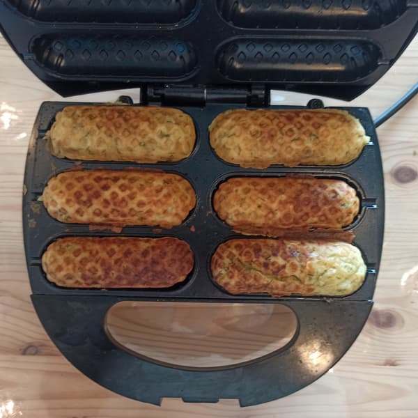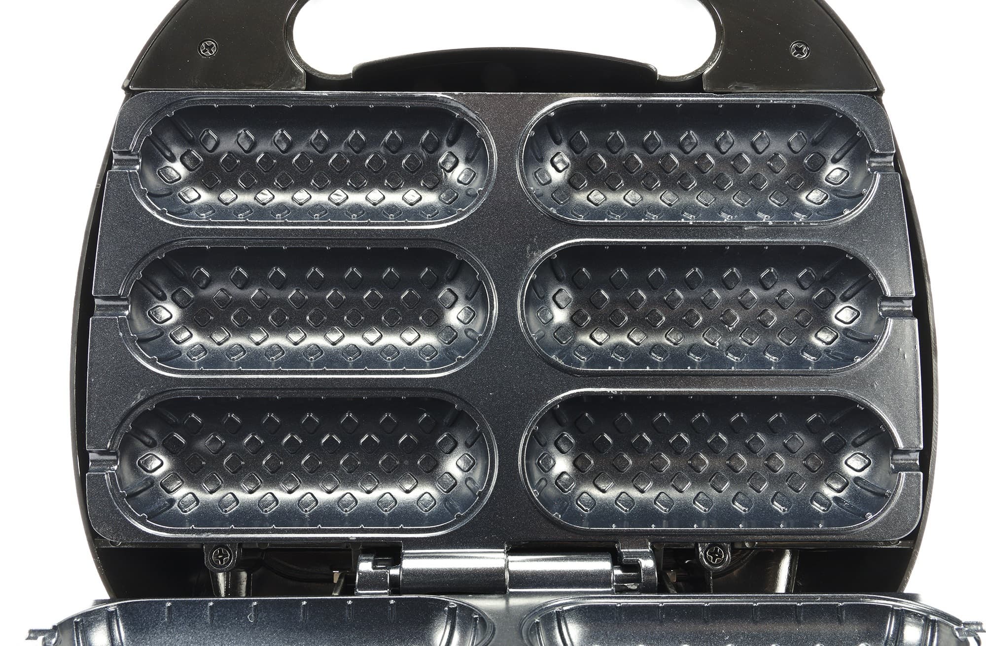 Аппарат не подходит для готовки блюд вроде вафель без начинки, которые всё же требуют плоских панелей, но хорошо справляется с задачей запечь готовую начинку в тесте.