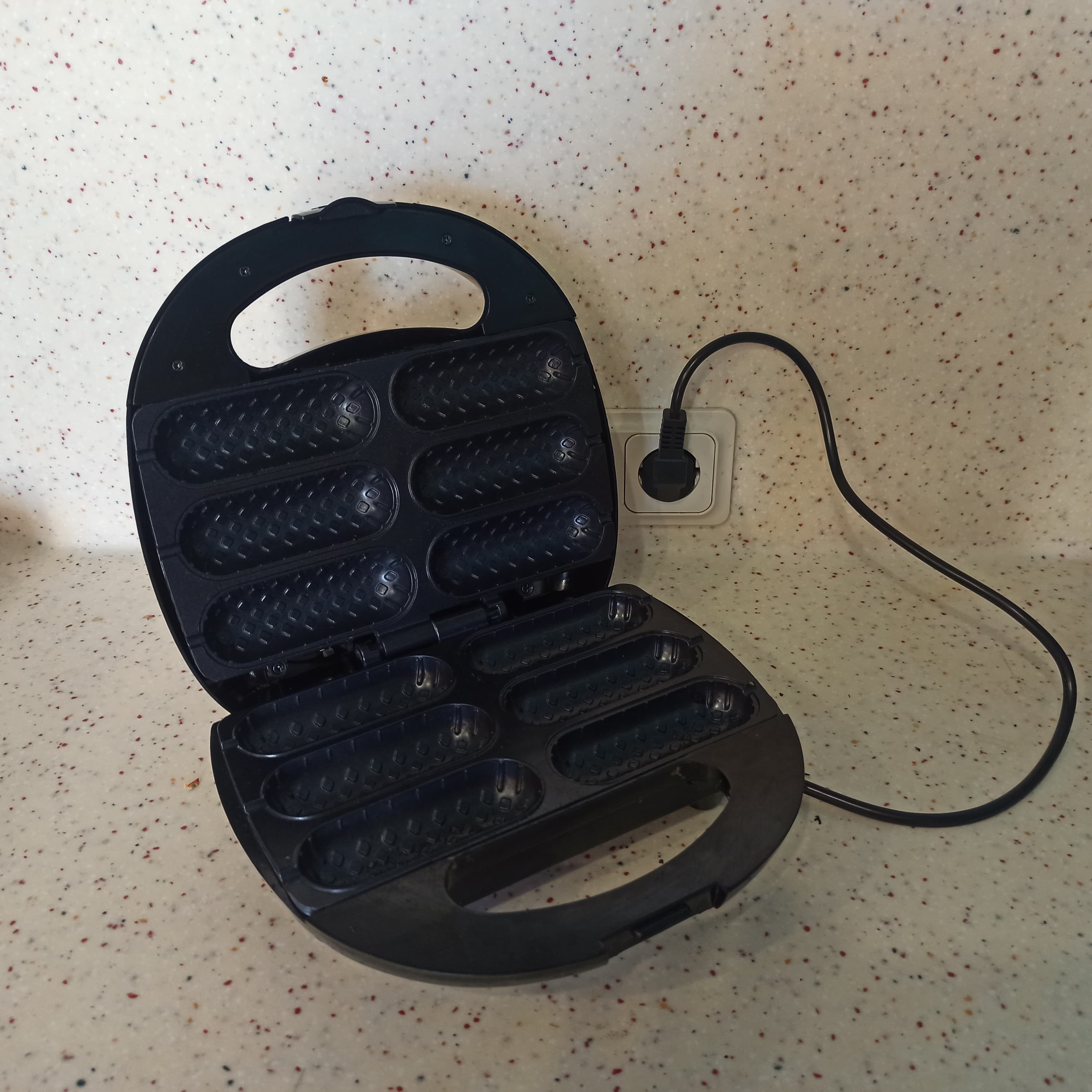 У кухонного прибора, который прибыл к нам на тестирование, нет устоявшегося наименования на русском языке. Чтобы понять, как его называть, мы посмотрели варианты перевода словосочетания hotdog maker, которые встречаются в сети. Наиболее частыми оказались следующие: «сосисочница», «вафельница для корн-догов», «мультипекарь, сосисочница электрическая», «аппарат для приготовления хот-догов и сосисок на палочке», «гриль электрический для сосисок в тесте». Среди этих вариантов перевода тоже нет какого-то одного правильного. Строго говоря, каждое название отражает некую часть правды об этом приборе. В рамках нашей статьи мы остановились на варианте «прибор для приготовления хот-догов».
