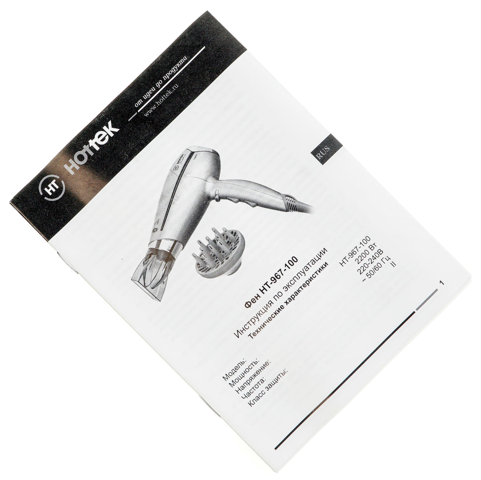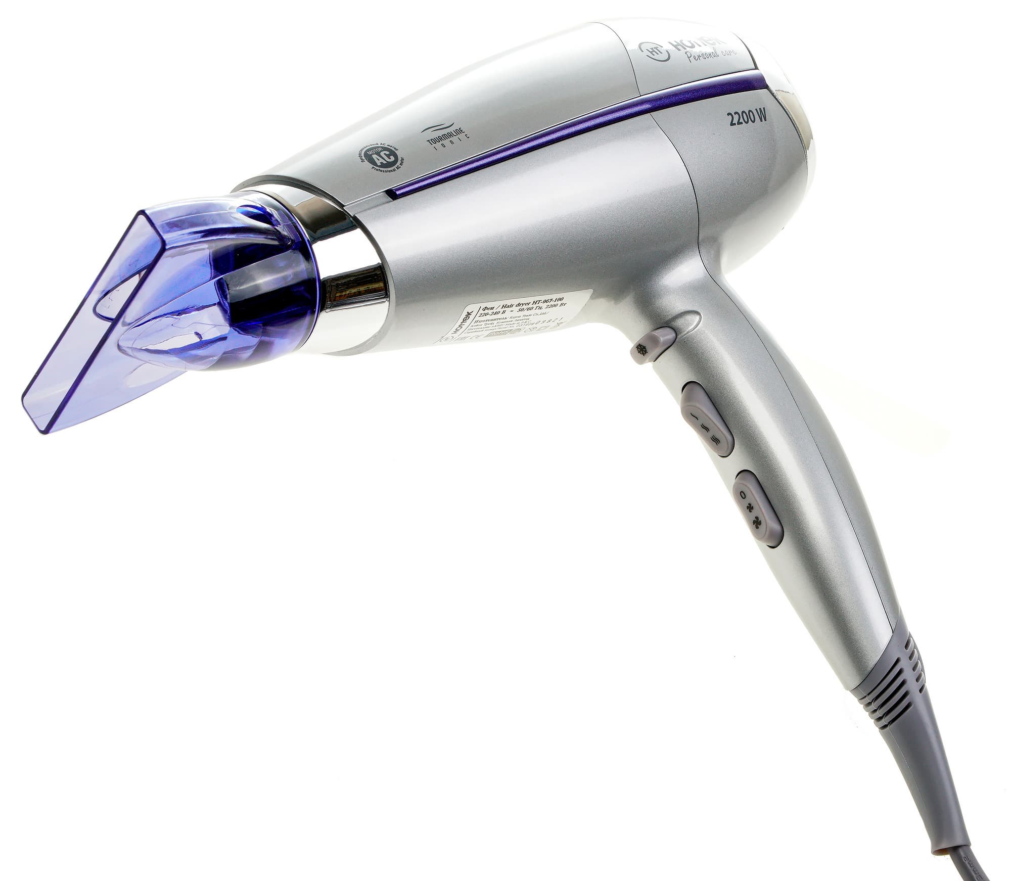 Hottek HT-967-100, попавший в тестовую лабораторию iXBT.com, оснащен всеми типичными функциями мощных фенов для сушки волос. «Турмалиновая ионизация», по словам производителя, предотвращает спутывание волос, делает их более послушными и блестящими. Мощный мотор работает в двух режимах подачи воздуха и трех температурных режимах. Дополнительно в комплект входит насадка-концентратор и диффузор.