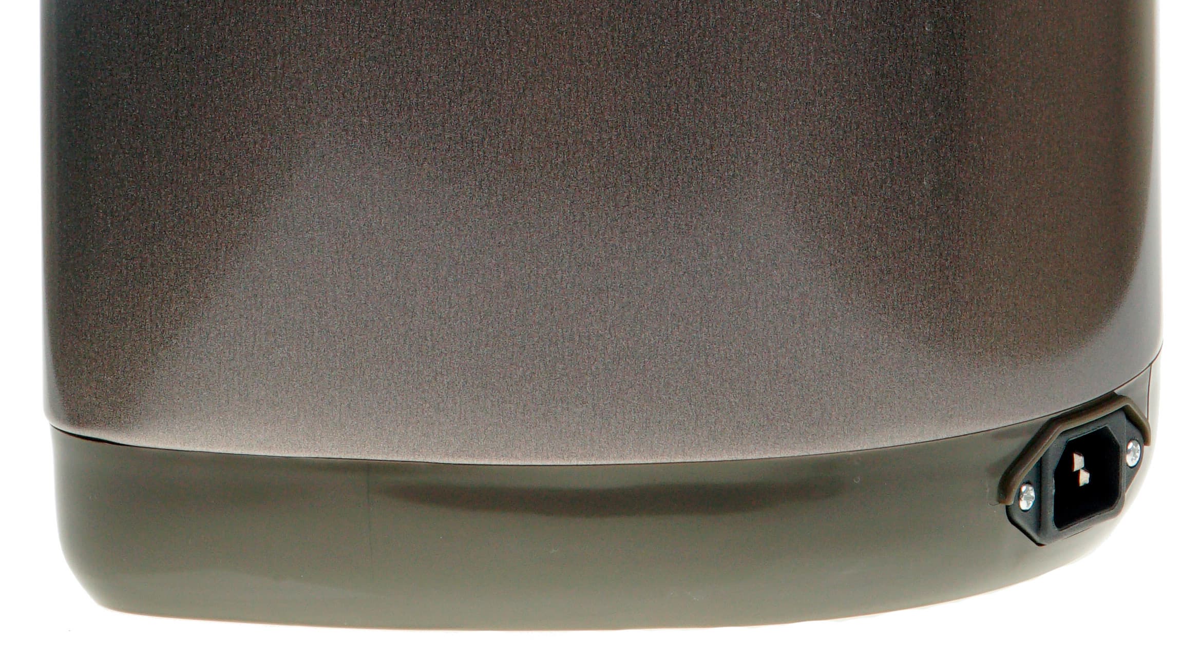 На задней стенке можно увидеть небольшую бирку с краткими техническими характеристиками прибора и саморез, над которым в корпусе выдавлен символ заземления. Насколько мы поняли, этот значок символизирует то, что корпус заземлен. Однако рассчитывать на то, что его считает и правильно поймет рядовой потребитель, как нам кажется, несколько наивно, а инженеру вполне хватит одного взгляда на разъем для подключения кабеля питания, чтобы понять, что использование заземления предполагается. В общем: что это — понятно, а вот для кого оно — нет.