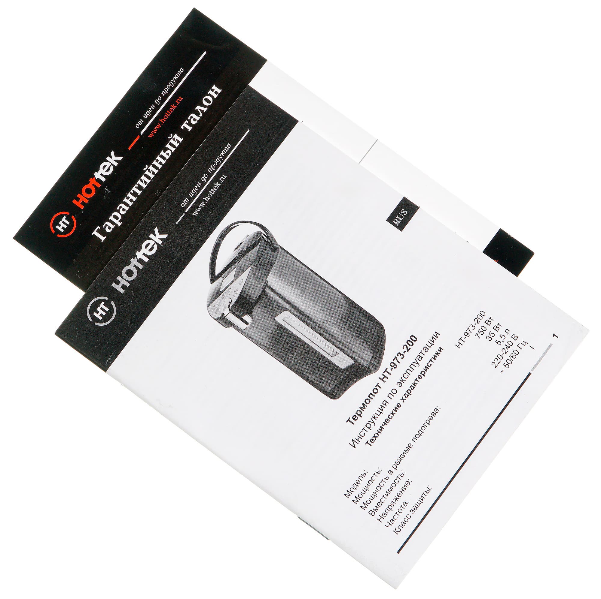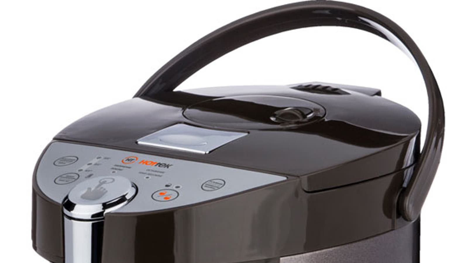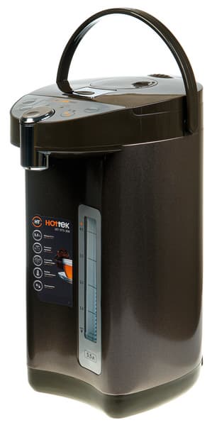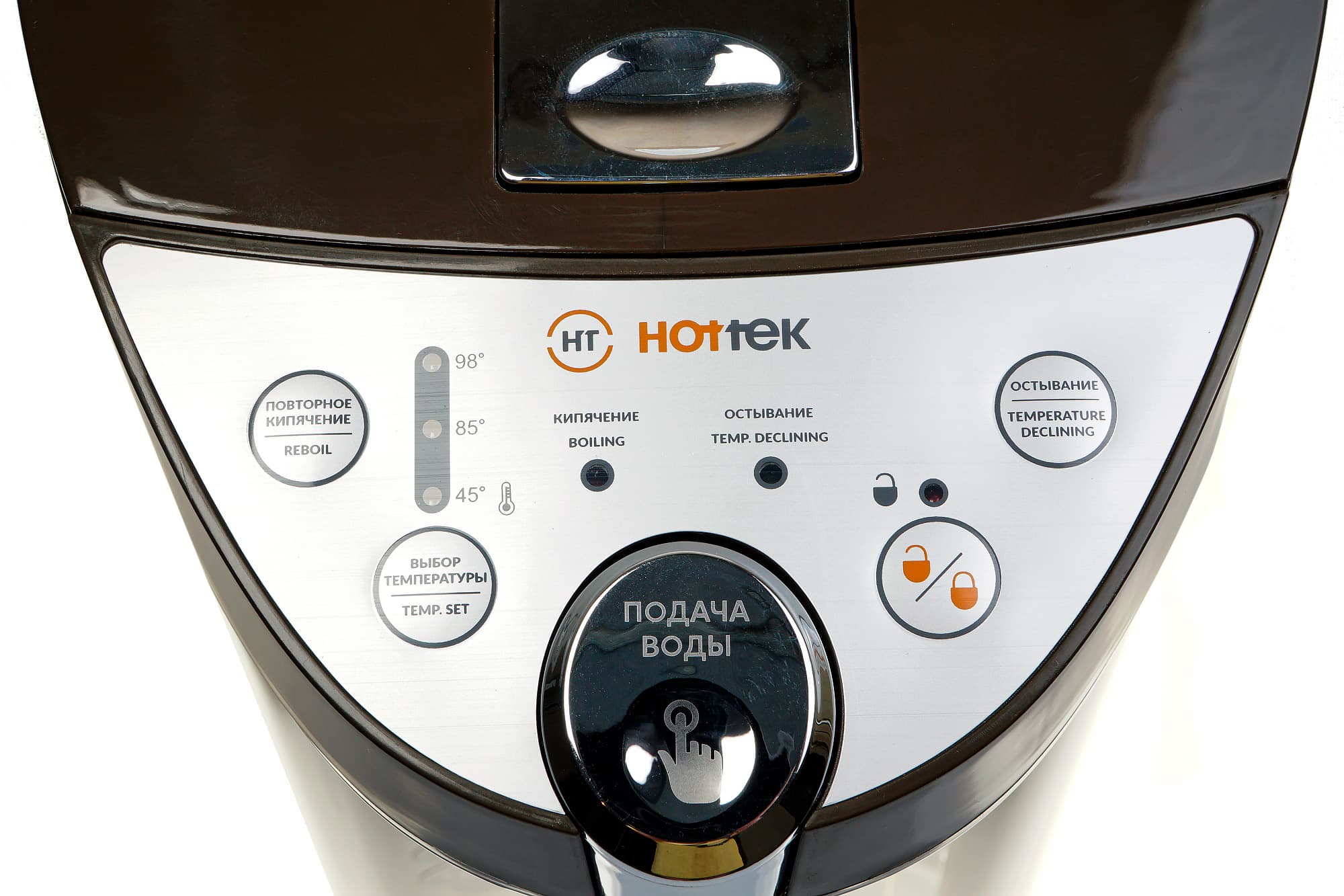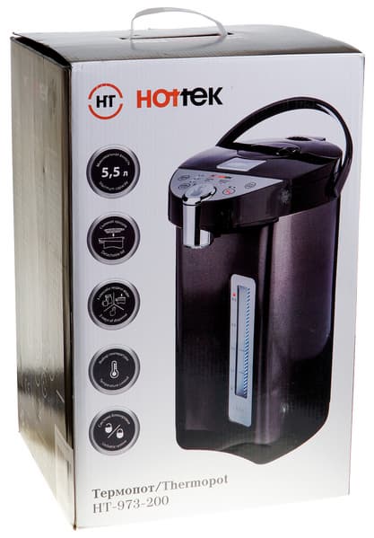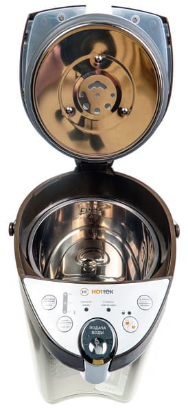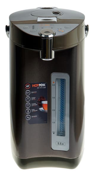 Hottek-973-200 нам понравился. Это большой, очень хорошо термоизолированный и экономичный термопот самой что ни на есть классической схемы, который оснащен всем необходимым для удовлетворения потребностей среднестатистического потребителя.