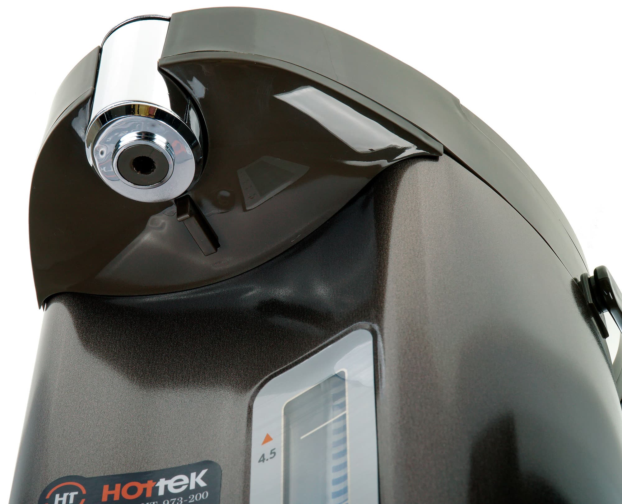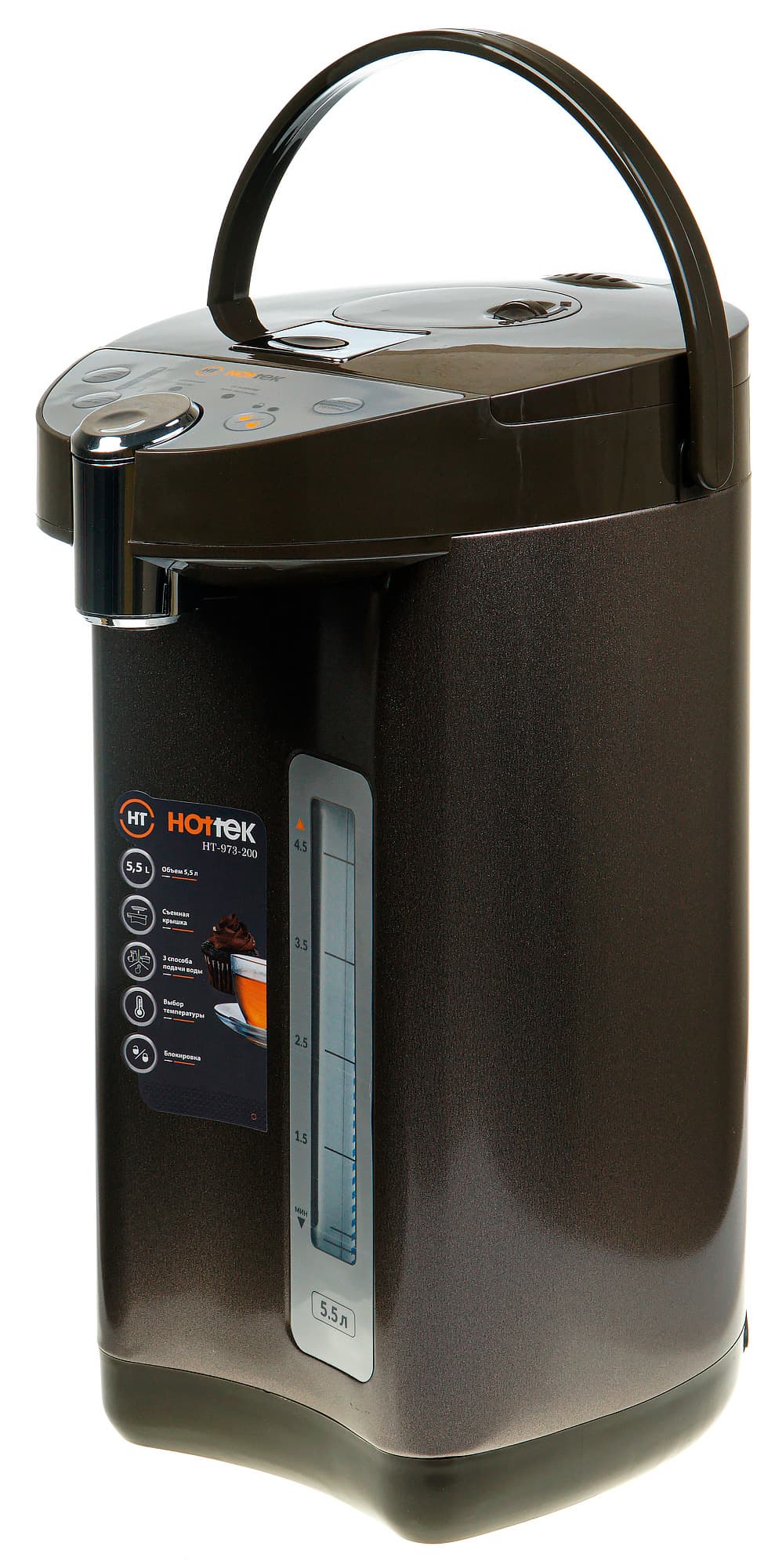 Тот, кто хоть раз в жизни видел термопот, при взгляде на Hottek HT-973-200 определит назначение этого прибора за полсекунды: здесь каждый элемент конструкции расположен на «том самом» месте и имеет «тот самый» вид.