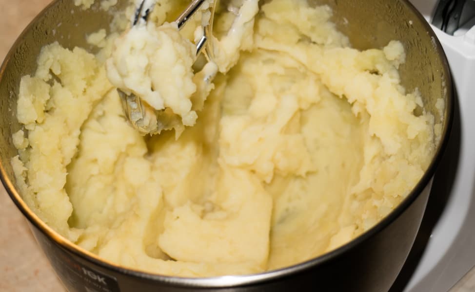 Тесто было замешано превосходно. Миксер вибрировал, но оставался на месте и справился с замесом более плотного, чем рекомендует инструкция, теста. При приготовлении картофельного пюре скорость вращения великовата, но не чрезмерна для получения именно пюре, а не клейстероподобной массы.