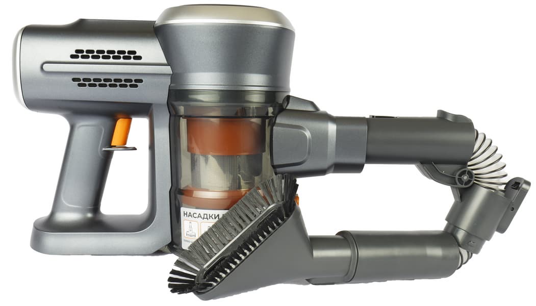 Редчайший случай, когда наши тестировщики не нашли, к чему придраться у пылесоса. Это не значит, что у модели вообще нет минусов, но для своей ценовой категории (бюджетный вертикальный пылесос) — практически нет. Стик понравился хорошей длительностью автономной работы и достаточной мощностью, обеспечивающей высокое качество повседневной уборки небольшой квартиры в качестве электровеника, а при необходимости — возможностью привести в порядок мягкую мебель, верхушки шкафов и салон автомобиля. Отдельно отметим богатую комплектацию — насадки есть на все случаи жизни, и подсветку зоны уборки — эта функция очень помогает наводить чистоту и характерна для более дорогих моделей. У пылесоса есть НЕРА фильтр на выходе воздуха, три скорости работы и моторизованная основная насадка для пола с турбощеткой.