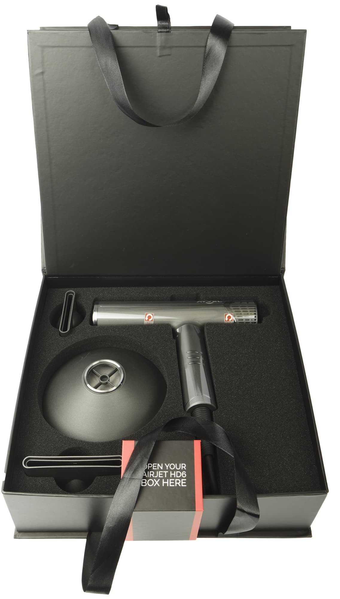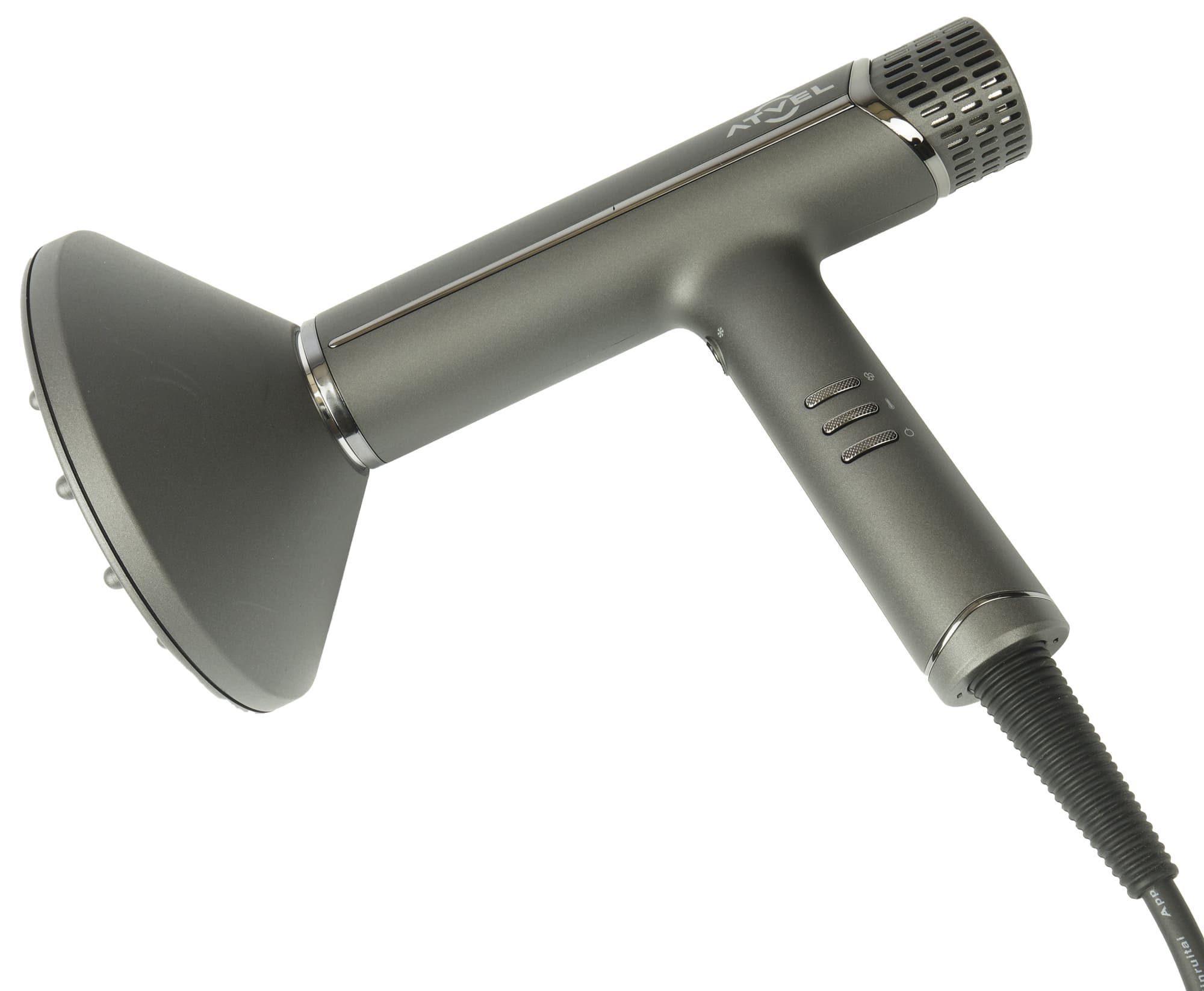 Этот стильный фен не из дешевых (хотя и не из самых дорогих), зато дорогой человек точно оценит такое вложение в красоту и здоровье его или ее волос. А также — в экономию времени: ведь сушить и укладывать волосы этим феном очень быстро и просто. У фена неброский, но по-настоящему премиальный дизайн, за который наша редакция удостоила его специального знака. Модель отлично показала себя как в практических тестах, так и в измерениях, у нее исправно срабатывал датчик отключения при перегреве (так не всегда бывает), она легкая, ее удобно держать в руках. Пытаясь найти хоть какой-то минус, тестировщики пытались хотя бы оставить на красивом графитовом корпусе отпечатки пальцев — не вышло. Фен снабжен двумя концентраторами воздушного потока и диффузором. Все насадки и решетка воздухозаборника имеют надежные и удобные магнитные крепления. У фена 3 скорости воздушного потока и 4 уровня его нагрева — комнатная температура, 60, 90 и 120 °C, а также кнопка холодного обдува.