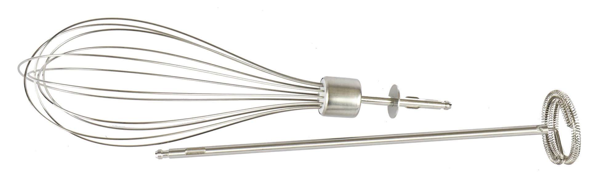 Моделей, в комплекте которых есть насадка для приготовления капучино, не очень много, но найти можно, и если вы находитесь в поиске сразу и погружного блендера, и капучинатора, то стоит обратить внимание на комплектацию первого. Насадка для вспенивания молока представляет собой такой же маленький пружинный венчик, как у ручных вспенивателей. В качестве примеров назовем протестированные нами погружной блендер Redmond RHB-CB2986 и модели Brayer: BR1252, BR1256 и BR1257.