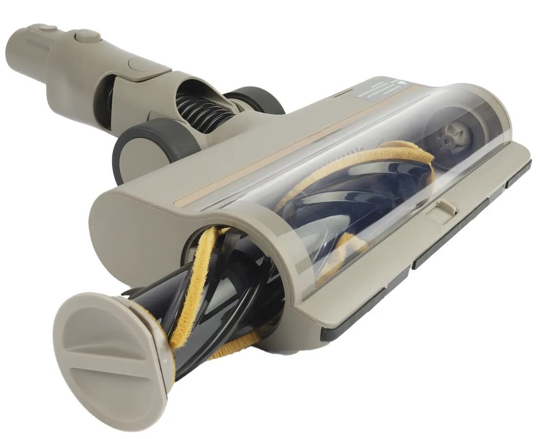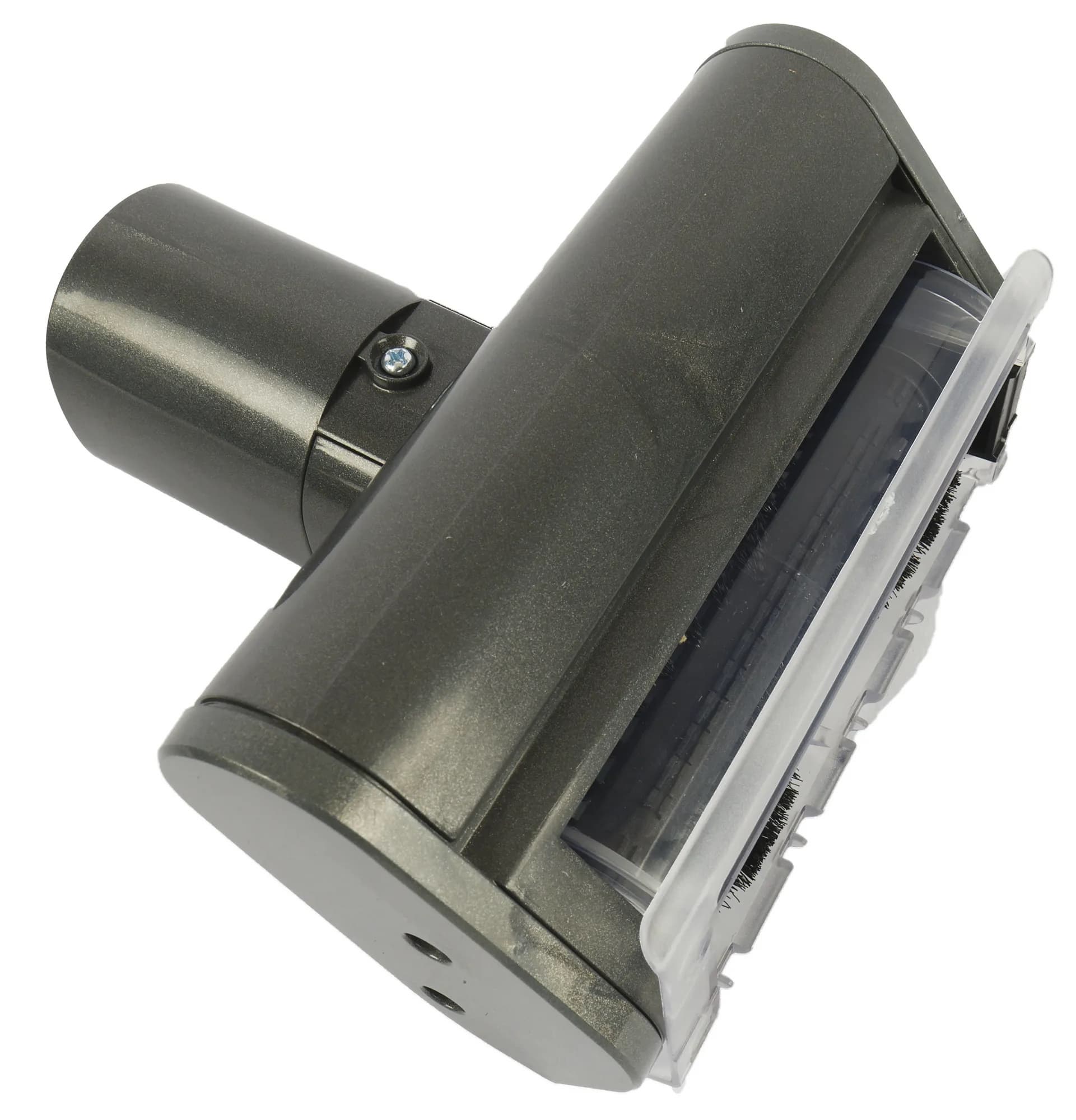 Основная насадка для пола в современных стиках чаще всего моторизованная: ротор турбощетки в ней вращается не под воздействием воздушного потока, а приводится в движение встроенным в насадку небольшим моторчиком. Есть модели, где моторизована и турбонасадка для мебели — такое приспособление эффективнее собирает с диванов шерсть животных.