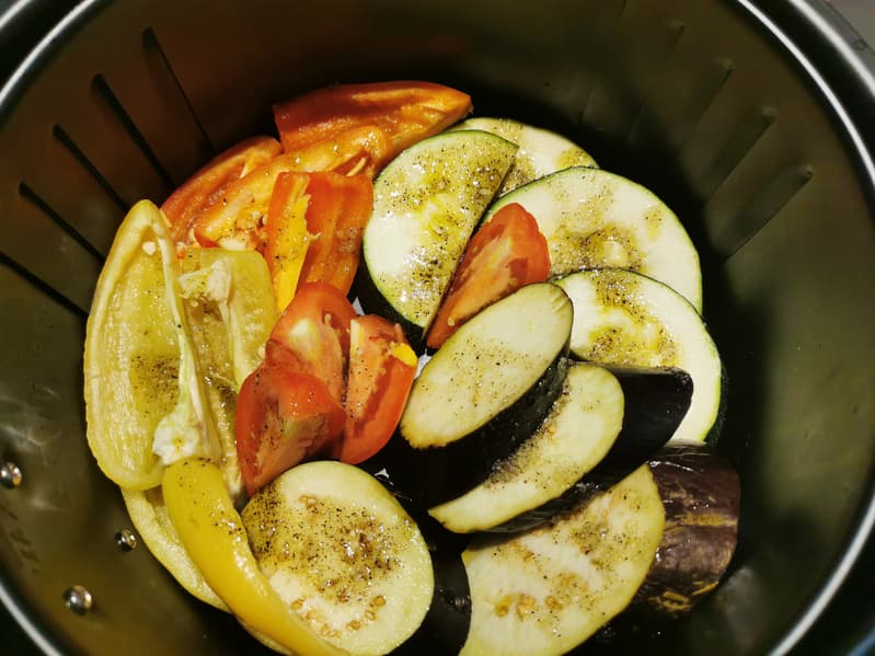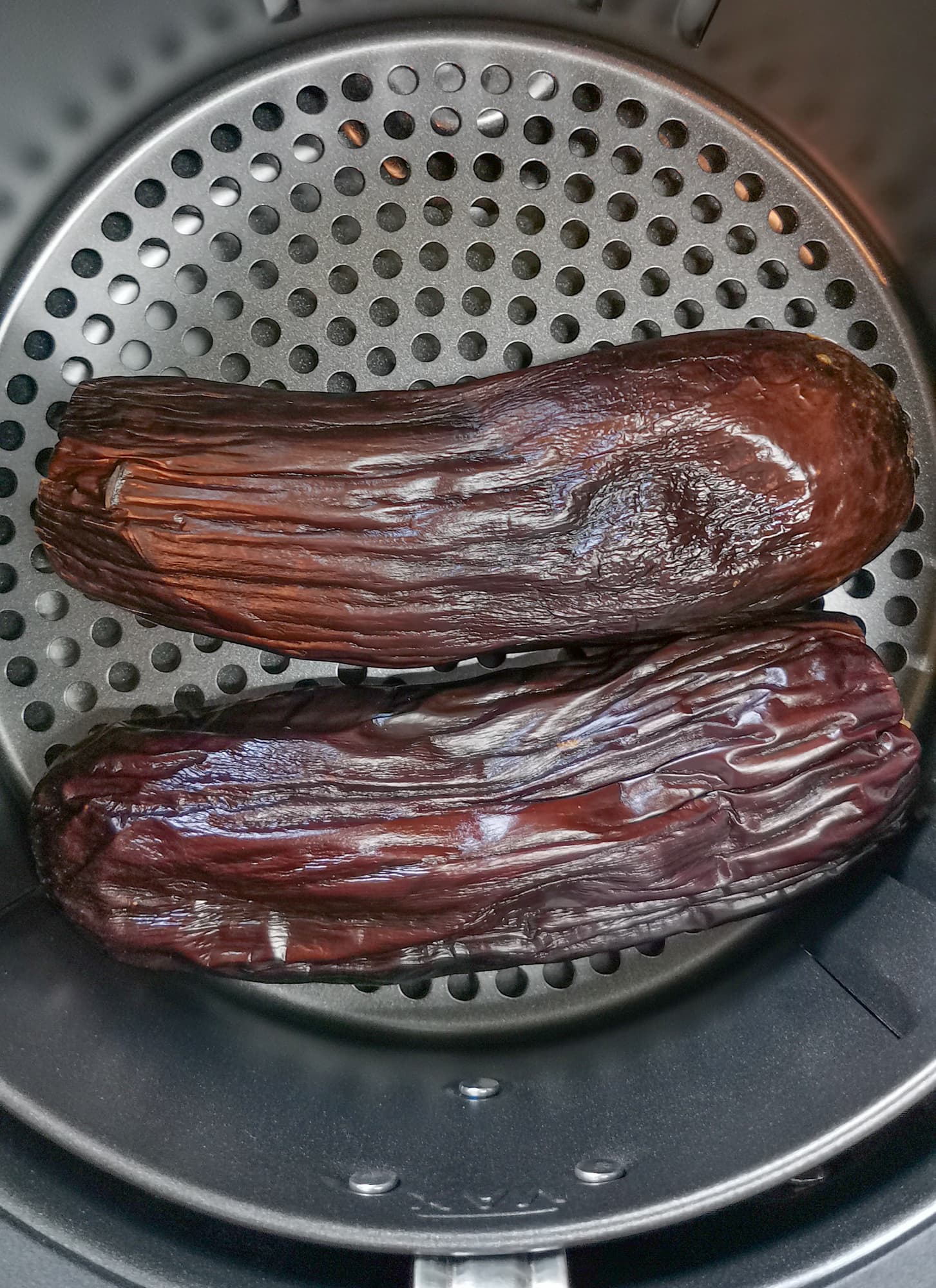 А вот готовить в аэрогриле баклажаны целиком в кожуре можно и нужно просто так или завернув их в фольгу, чтобы сохранились все соки и меньше пачкался сам прибор. Кроме того, можно использовать специальные вкладки-подставки для аэрогриля.