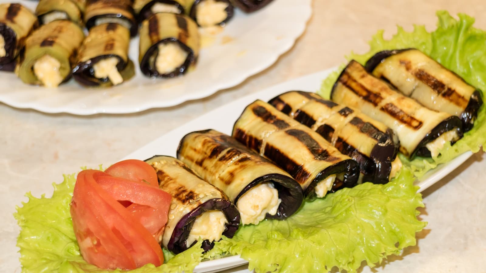 Контактный гриль — отличное устройство и для жарки тонких ломтиков баклажанов для рулетиков: процесс идет быстро, ломтики не успевают впитать слишком много масла. Экспериментируя во время тестирования гриля De’Longhi CGH1012D, мы выбрали температуру 220 °C и продолжительность жарки 6 минут. При таких параметрах получился отличный результат.