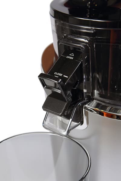 Существенное отличие от других подобных устройств — автоматический клапан выхода жмыха. Впрочем, он не требует внимания: как только в отжимной корзине скопится избыточное количество жмыха, клапан откроется автоматически. По утверждению производителя, подобное конструктивное решение позволяет отжать большее количество сока.