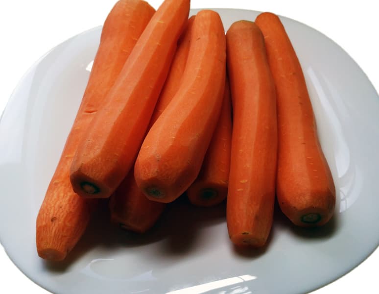 Для отжима сока из моркови мы снова берем черную фильтрующую решетку «для сока». Морковь почистили, разрезали на четыре части вдоль, затем — поперек. Вес чистого и подготовленного продукта составляет все тот же один килограмм.