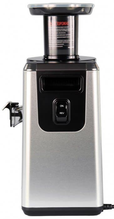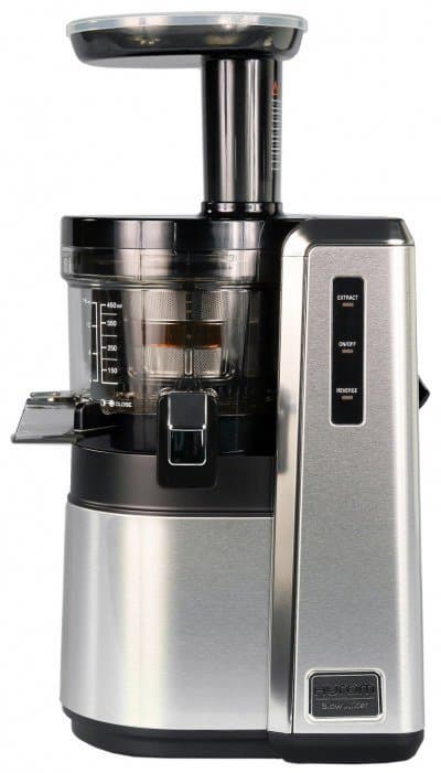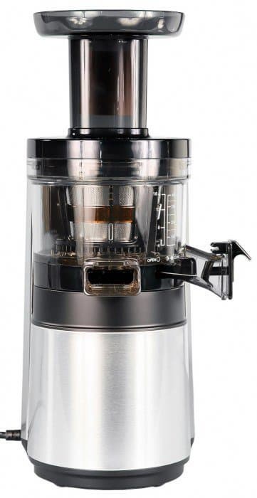 Ключевыми достоинствами данной модели является расширенная комплектация и низкий уровень шума. Однако за бесшумность придется «расплатиться» необходимостью строго соблюдать правила подготовки (нарезки) исходного сырья. Отправить в соковыжималку целую морковь не получится: такая нагрузка окажется слишком велика для мотора с заявленной мощностью в 150 Вт. Ну и, конечно, не может не впечатлять гарантия: целых 10 лет на сам прибор и 2 года на неэлектрические комплектующие.