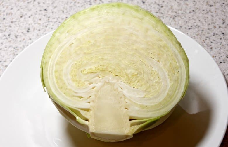 Один килограмм белокочанной капусты вместе с кочерыжкой нарезается на куски, свободно проходящие в горловину соковыжималки. Капусту мы нарезали на довольно мелкие куски, в полном соответствии с инструкцией. Особое внимание уделили фрагментам с кочерыжкой.