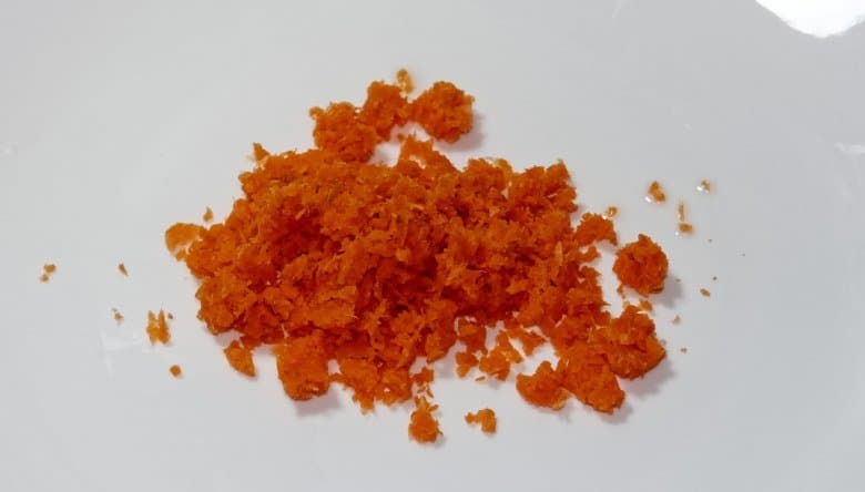 Жмых, как и в предыдущем тесте, также оказался совершенно сухим. Прибор чрезвычайно эффективно отжал сок из очищенных цитрусовых.