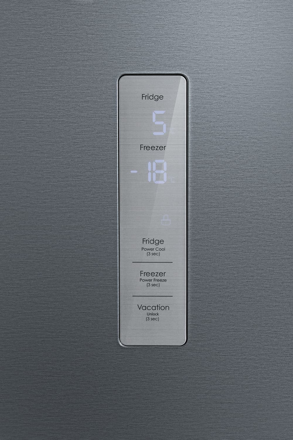 Кнопка Fridge устанавливает температуру в холодильном отделении (от +2 до +8 °C с шагом в 1 градус). Длинным нажатием на нее включается режим быстрого охлаждения.