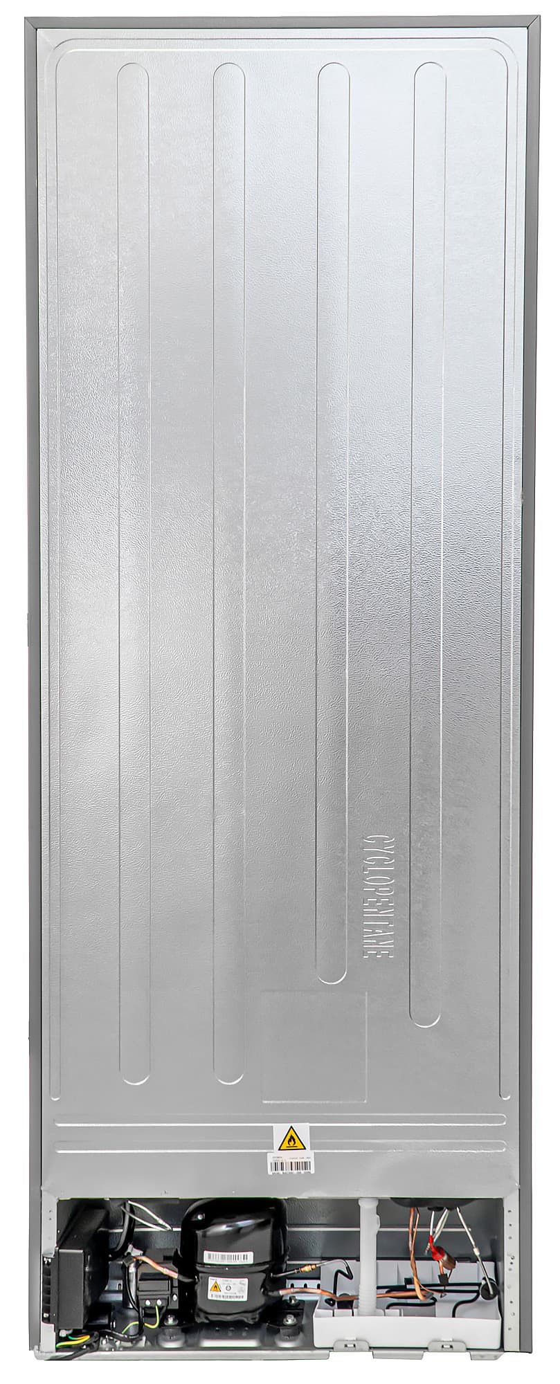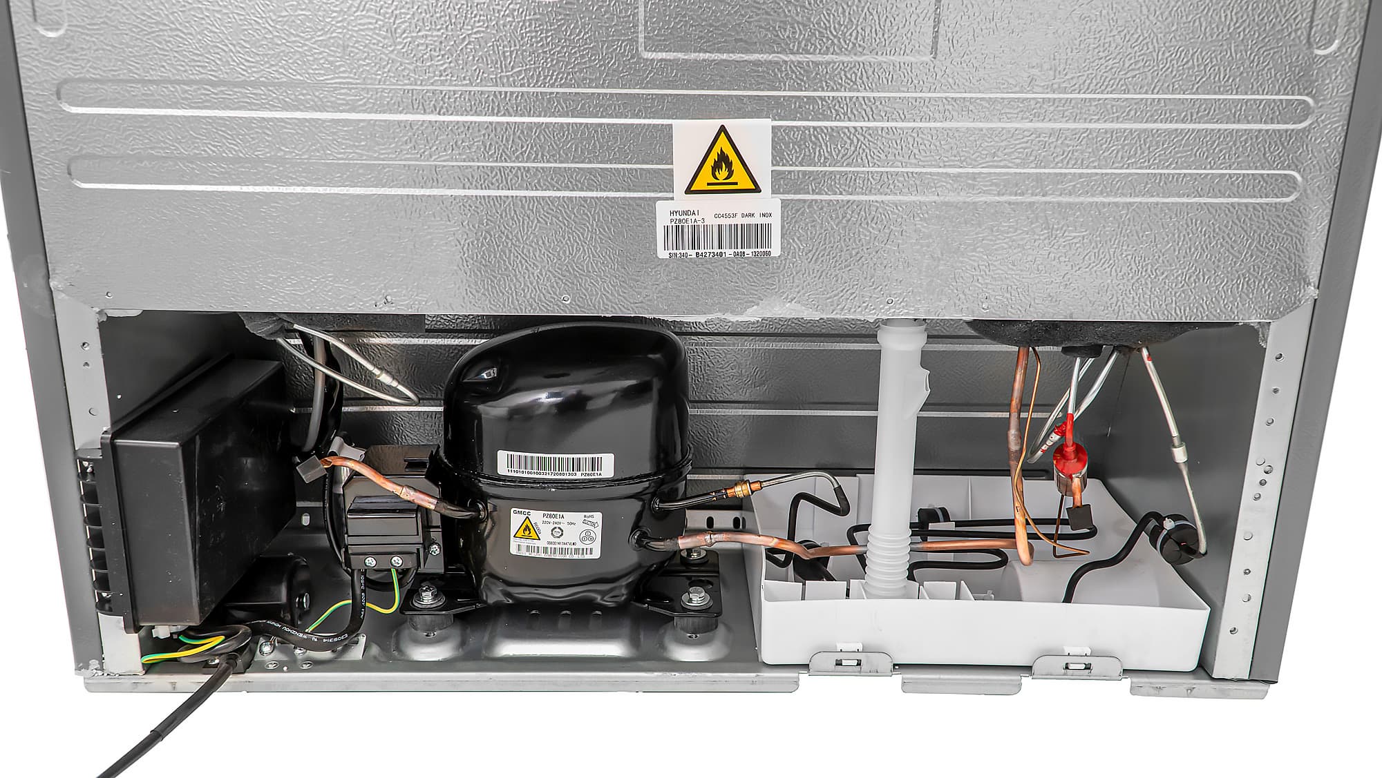 В нижней части задней панели находится ниша холодильного агрегата. В конструкции холодильника используется компрессор PZ80E1A компании GMCC (Guangdong Midea-Toshiba Compressor Company) — одного из ведущих производителей такого рода устройств для холодильного оборудования.