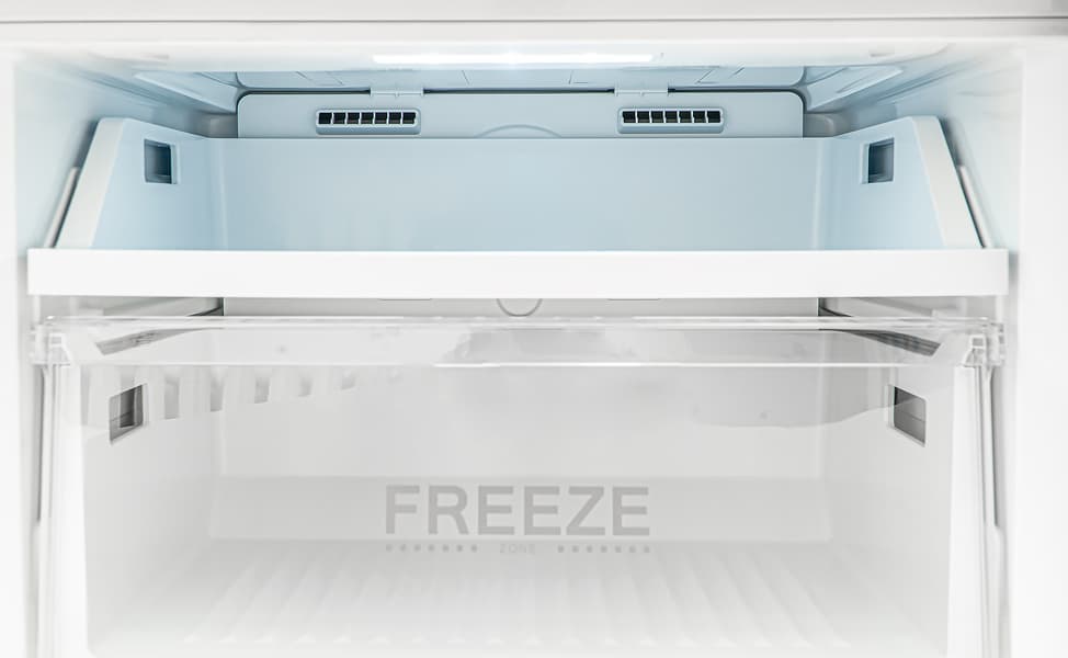 Внутри морозильного отделения два закрытых ящика и один, верхний, — открытый, без лицевой панели.