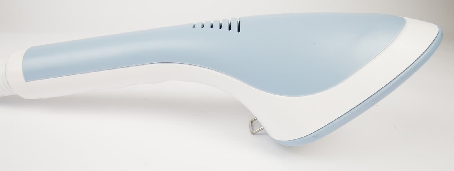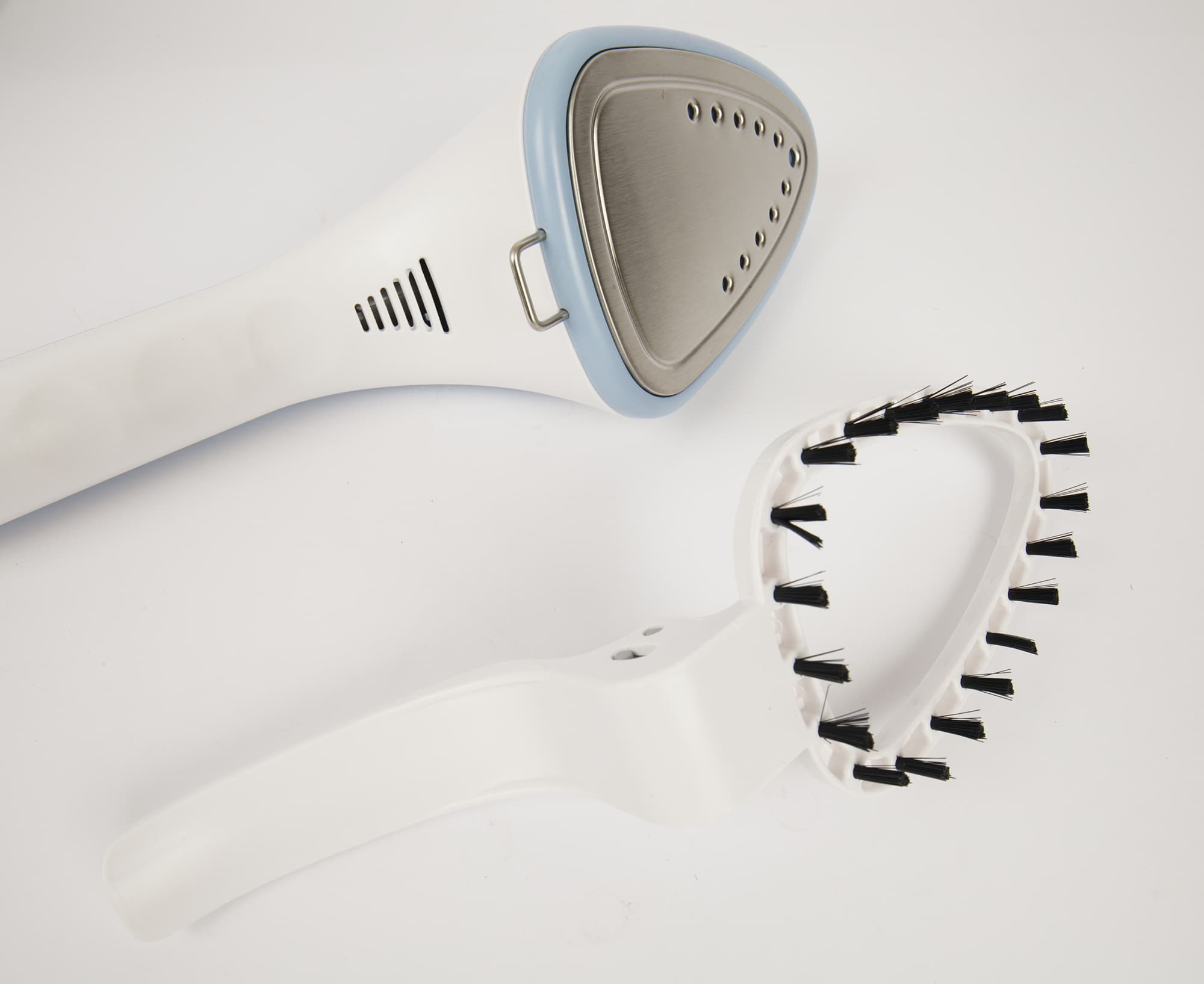 Утюжок отпаривателя имеет удобную форму и вес, рука не устает даже при длительной работе. В комплекте поставляется насадка-щетка, с помощью которой можно удалить ворсинки и шерсть животных с одежды, а также очистить ковры и обивку мягкой мебели.