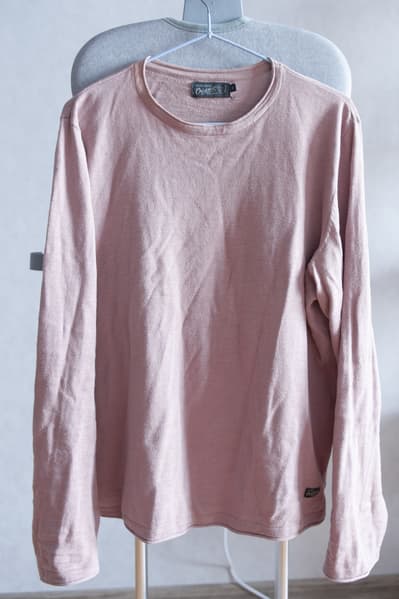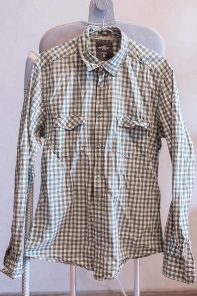 Рубашка из плотного хлопка была сильно измята и пересушена от длительного хранения в шкафу.