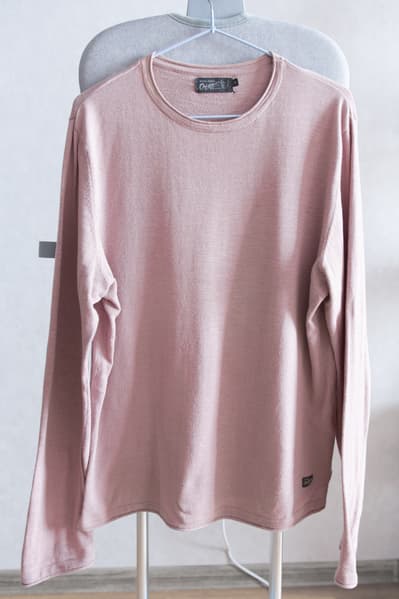 Здесь мы использовали только вертикальное отпаривание на 4-й мощности. Разместили кофту на вешалке и приступили к отпариванию.