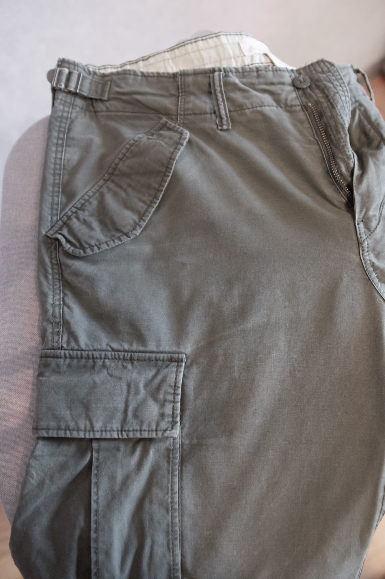 Брюки сложного кроя из очень плотной хлопчатобумажной ткани, помятые и немного пересушенные — отпаривателю будет непросто.