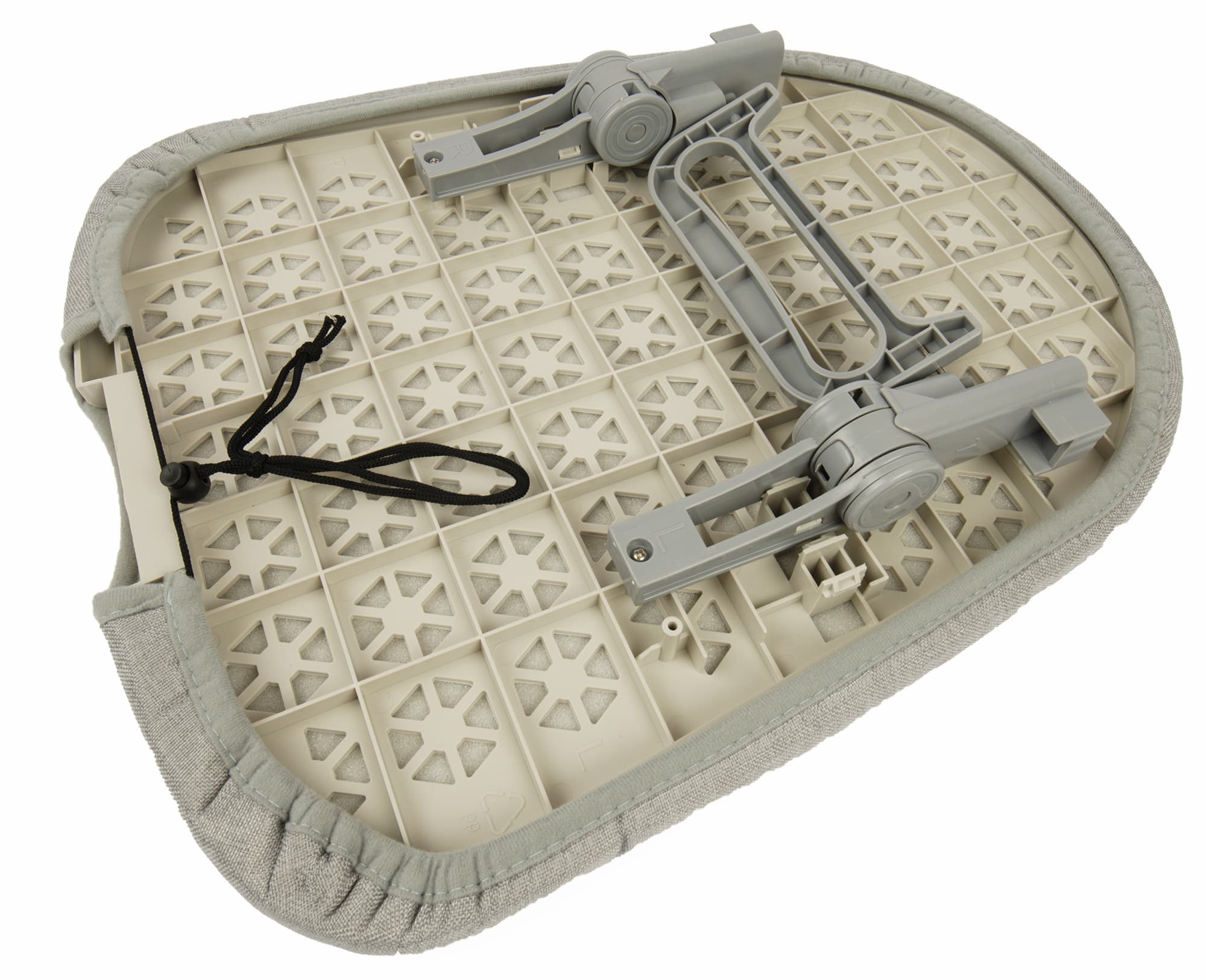 Для изменения наклона нужно потянуть вниз выступающую ручку и повернуть доску в нужное положение. Основание доски изготовлено из пластика, с большим количеством отверстий в форме шестиугольников. Съемный чехол сделан из прочной ткани, изнутри уплотненной слоем поролона.