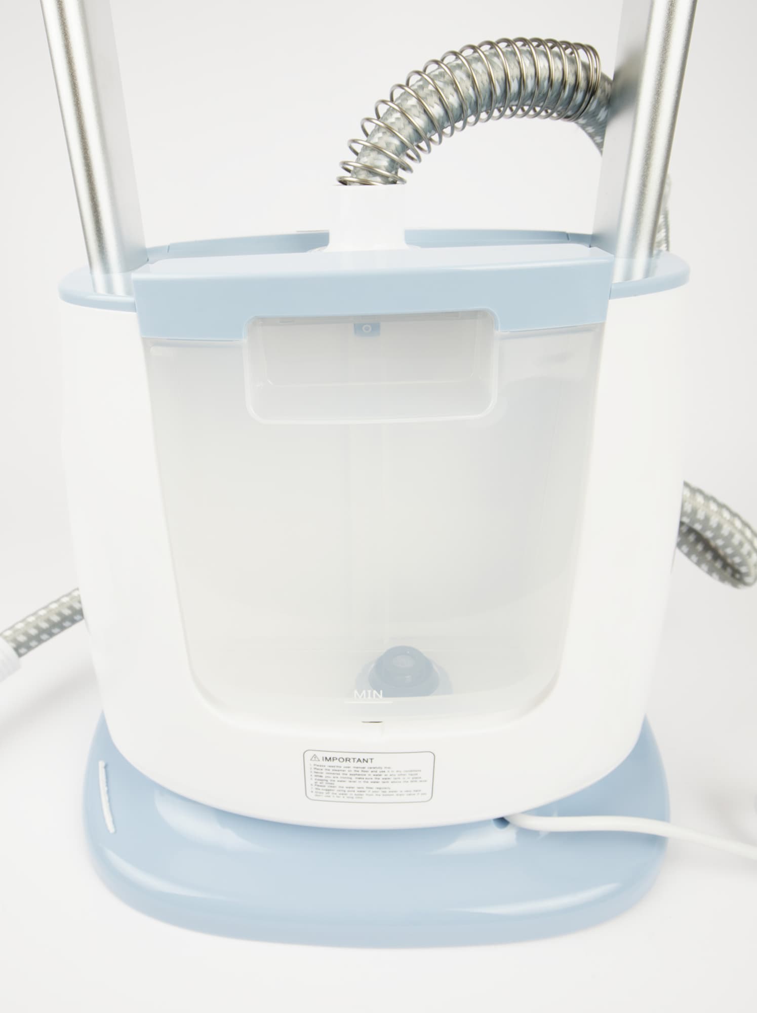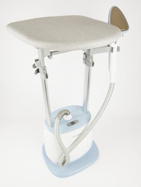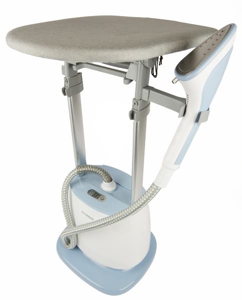 Регулировка положения гладильной доски, крючок для вешалки и изменяемая высота телескопических стоек, а также держатель для утюжка, съемный резервуар для воды и насадка в виде щетки — все эти элементы делают процесс отпаривания легким и эффективным. К плюсам, помимо продуманной конструкции, отнесем, в том числе, симпатичный дизайн и быстрый выход на максимальную мощность подачи пара. Приобретая этот отпариватель, стоит помнить, что для его хранения потребуется больше места, чем для обычного утюга.
