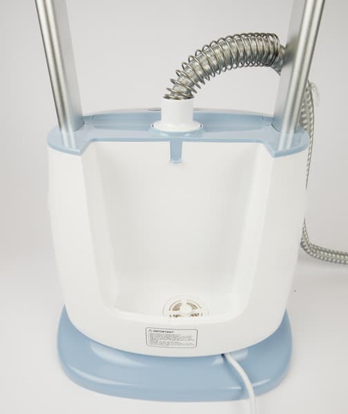 С обратной стороны располагается прозрачный съемный резервуар для воды. На дне ниши для размещения резервуара видно отверстие, через которое вода поступает в бойлер отпаривателя. Отверстие закрыто съемным фильтром. Снизу выходит шнур электропитания.