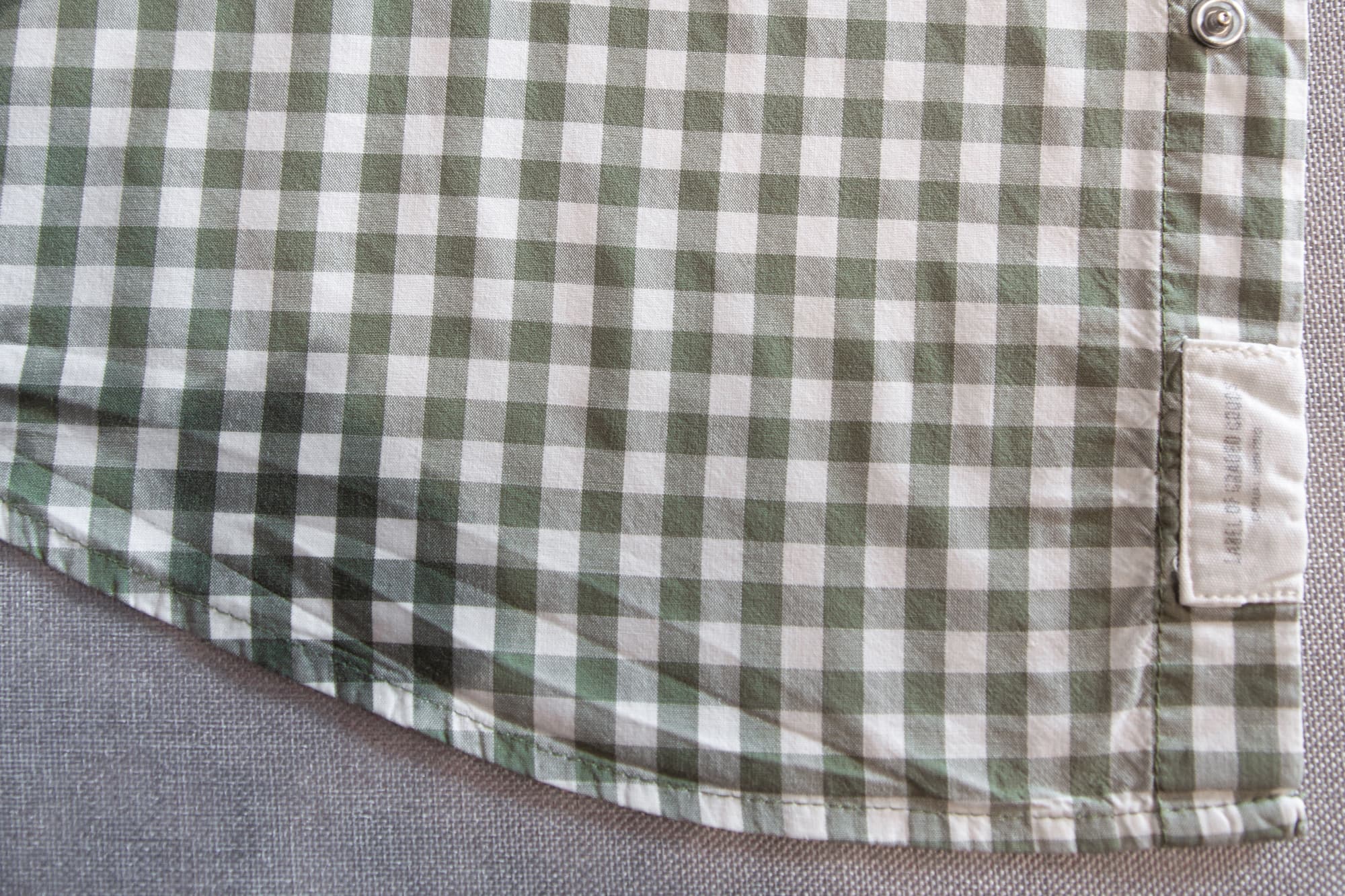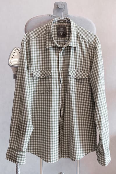На одной части рубашки, внизу, остались крупные заломы. Сколько бы мы ни водили утюжком по ткани, избавиться от них так и не удалось.